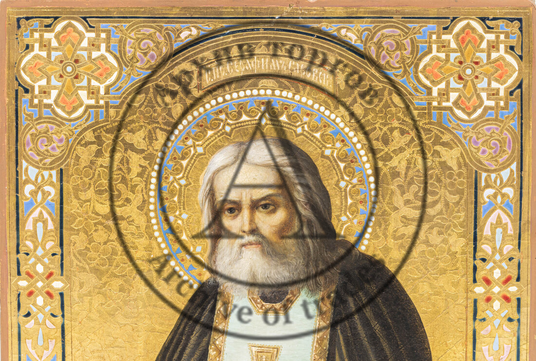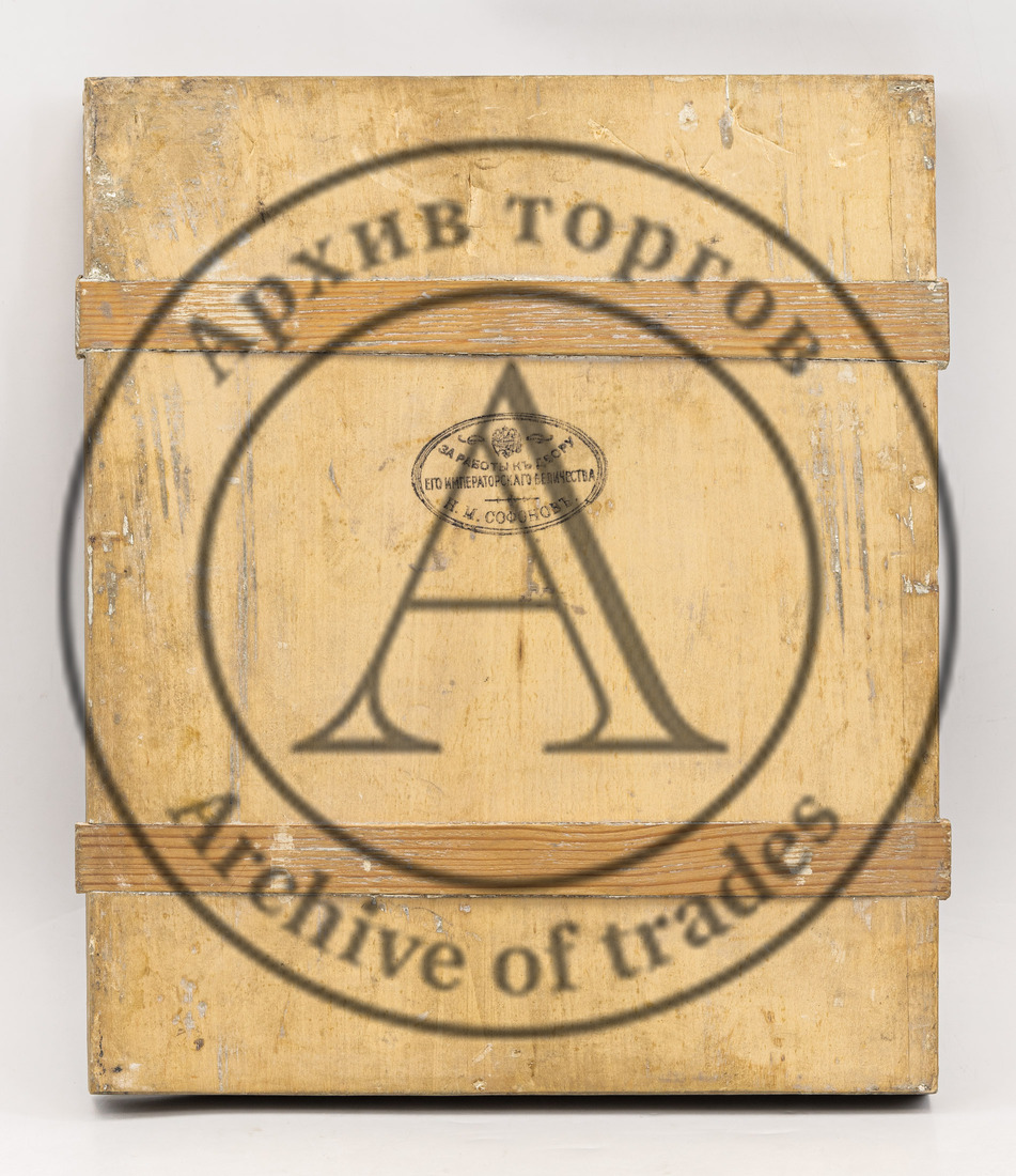 На оборотной стороне доски марка: «ЗА ЗАБОТЫ КЪ ДВОРУ // ЕГО ИМПЕРАТОРСКАГО ВЕЛИЧЕСТВА // Н.М. СОФОНОВЪ».