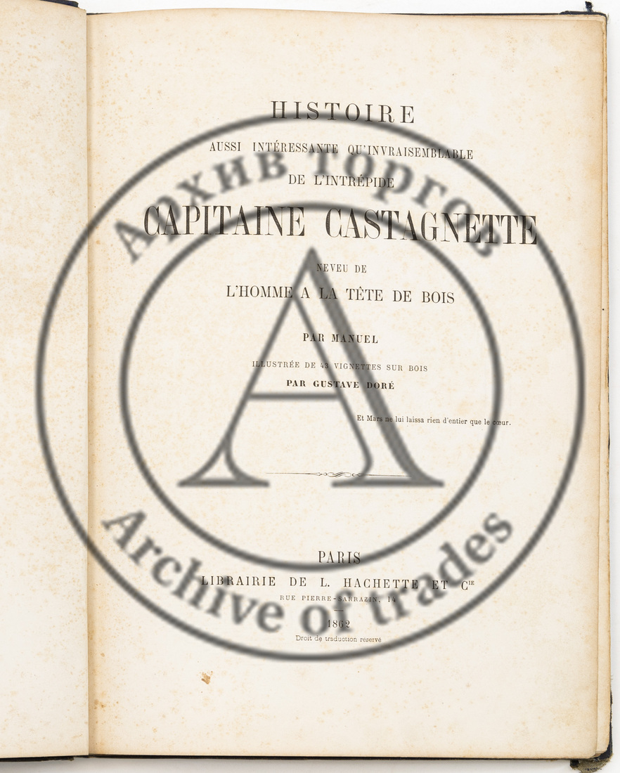 [Иллюстрации Г. Доре] Manuel. Histoire aussi intéressante qu’invraisemblable de l’intrépide Capitaine Castagnette / illustrée de 43 vignettes sur bois par G. Doré [История неустрашимого капитана Кастаньетта]. На франц. яз.