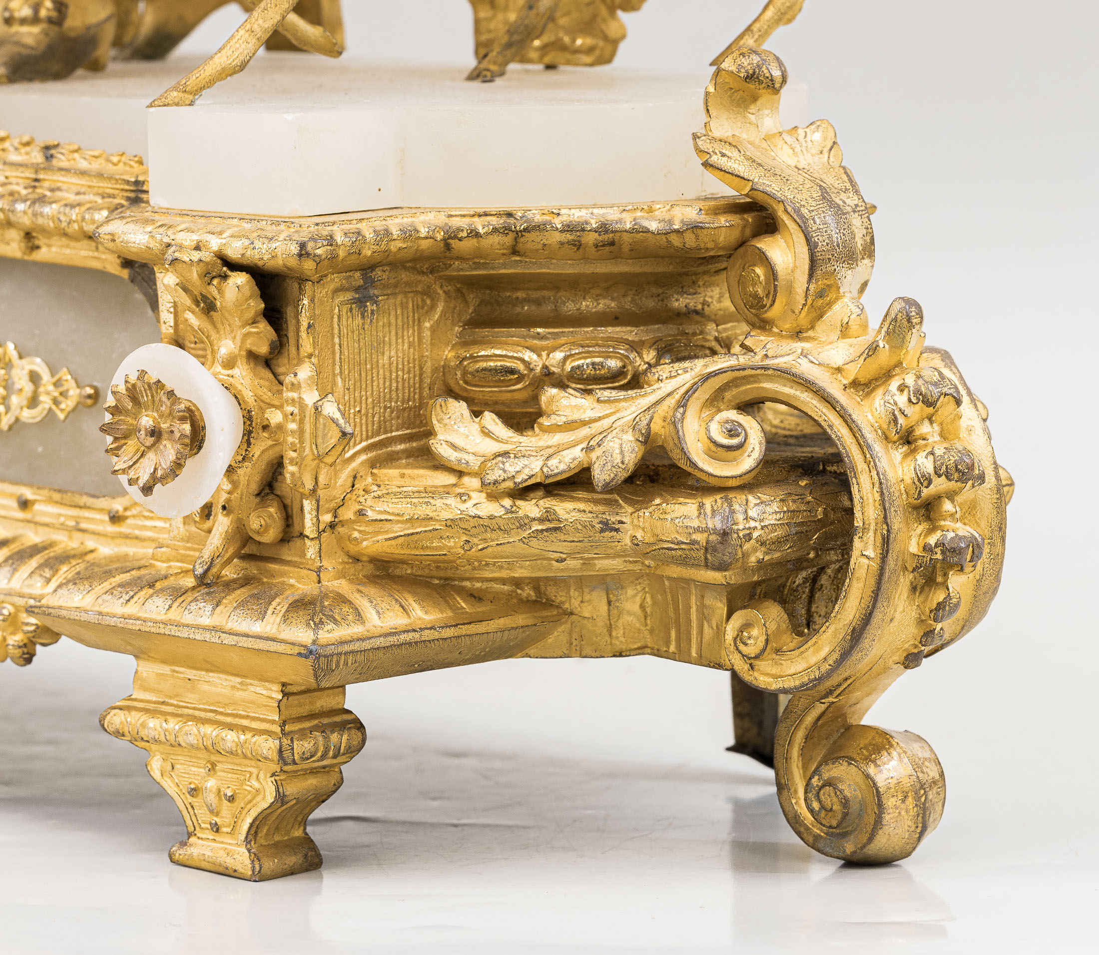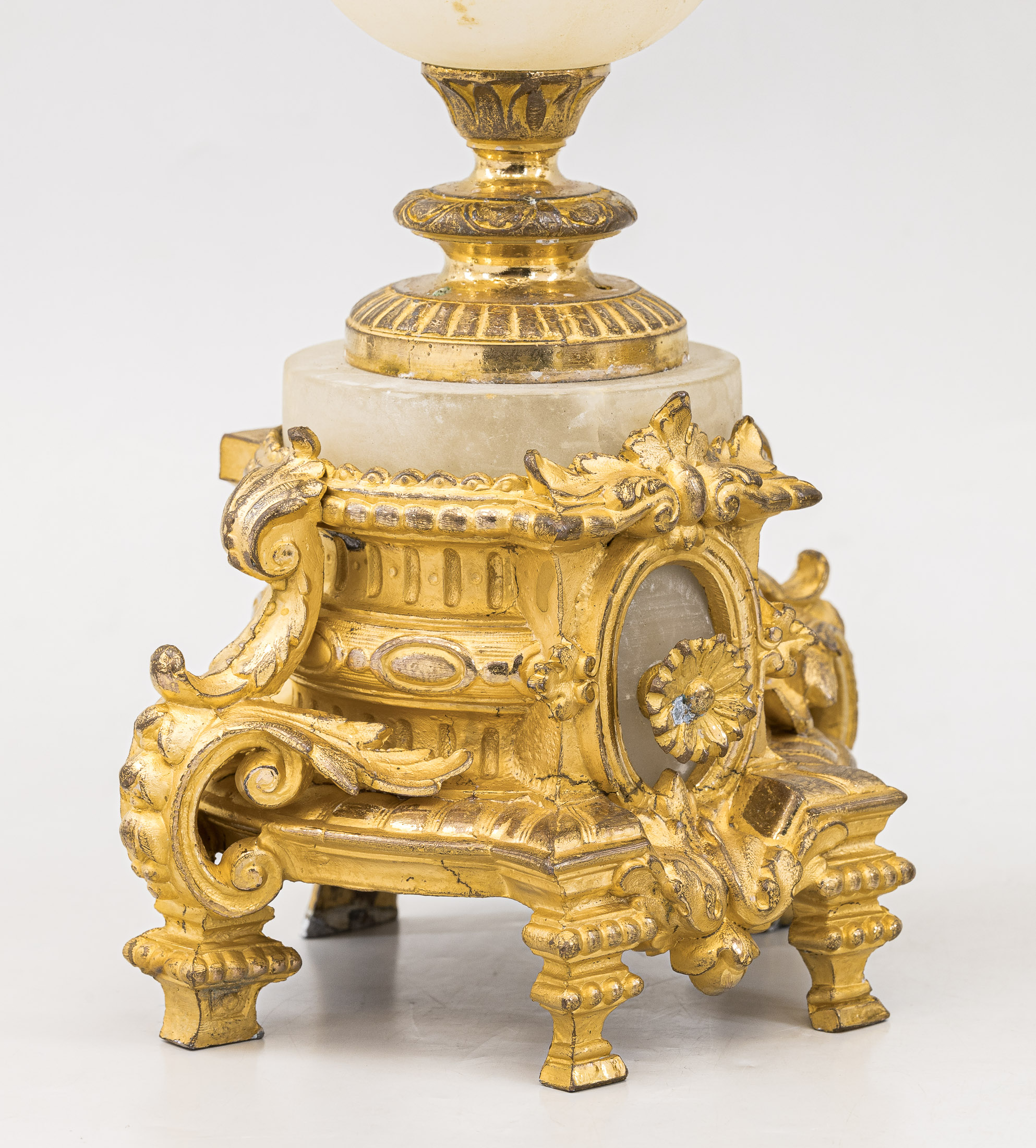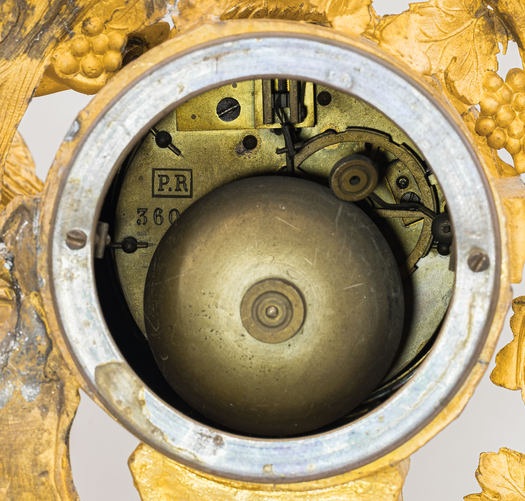 Сохранность: потертости золочения, окислы; небольшие трещины; маятник в комплекте; отсутствует ключ; не на ходу.