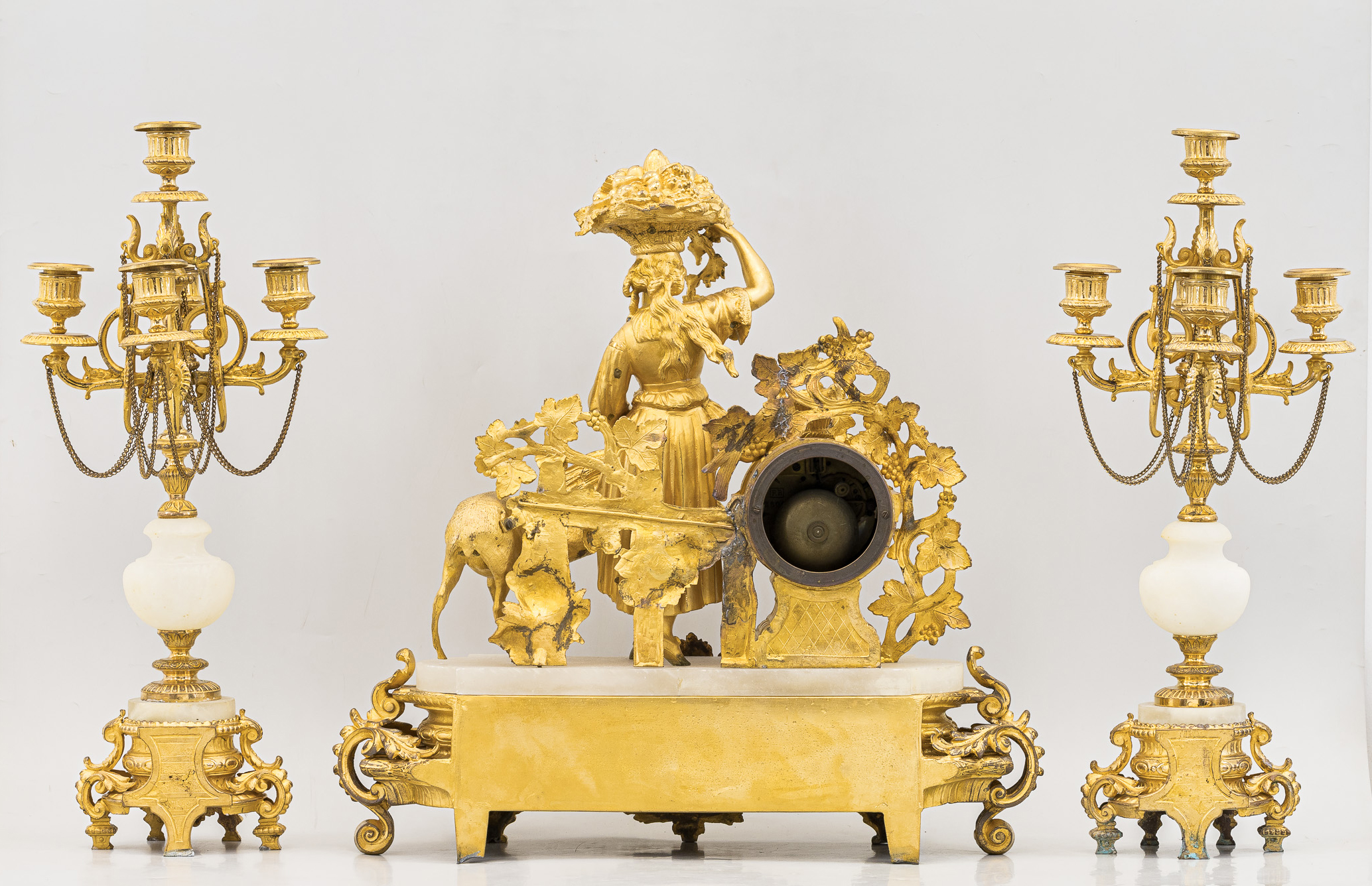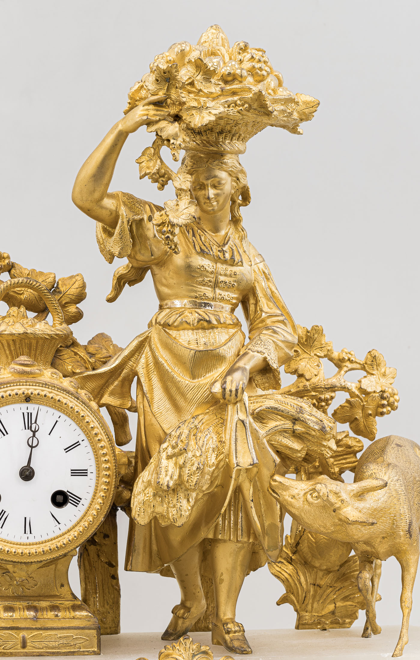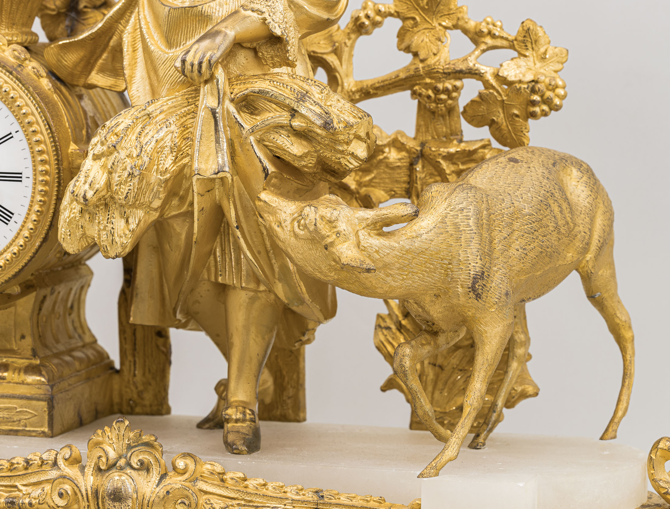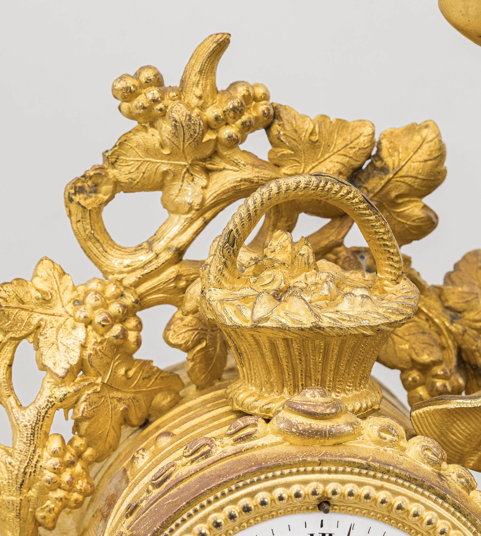 Сохранность: потертости золочения, окислы; небольшие трещины; маятник в комплекте; отсутствует ключ; не на ходу.