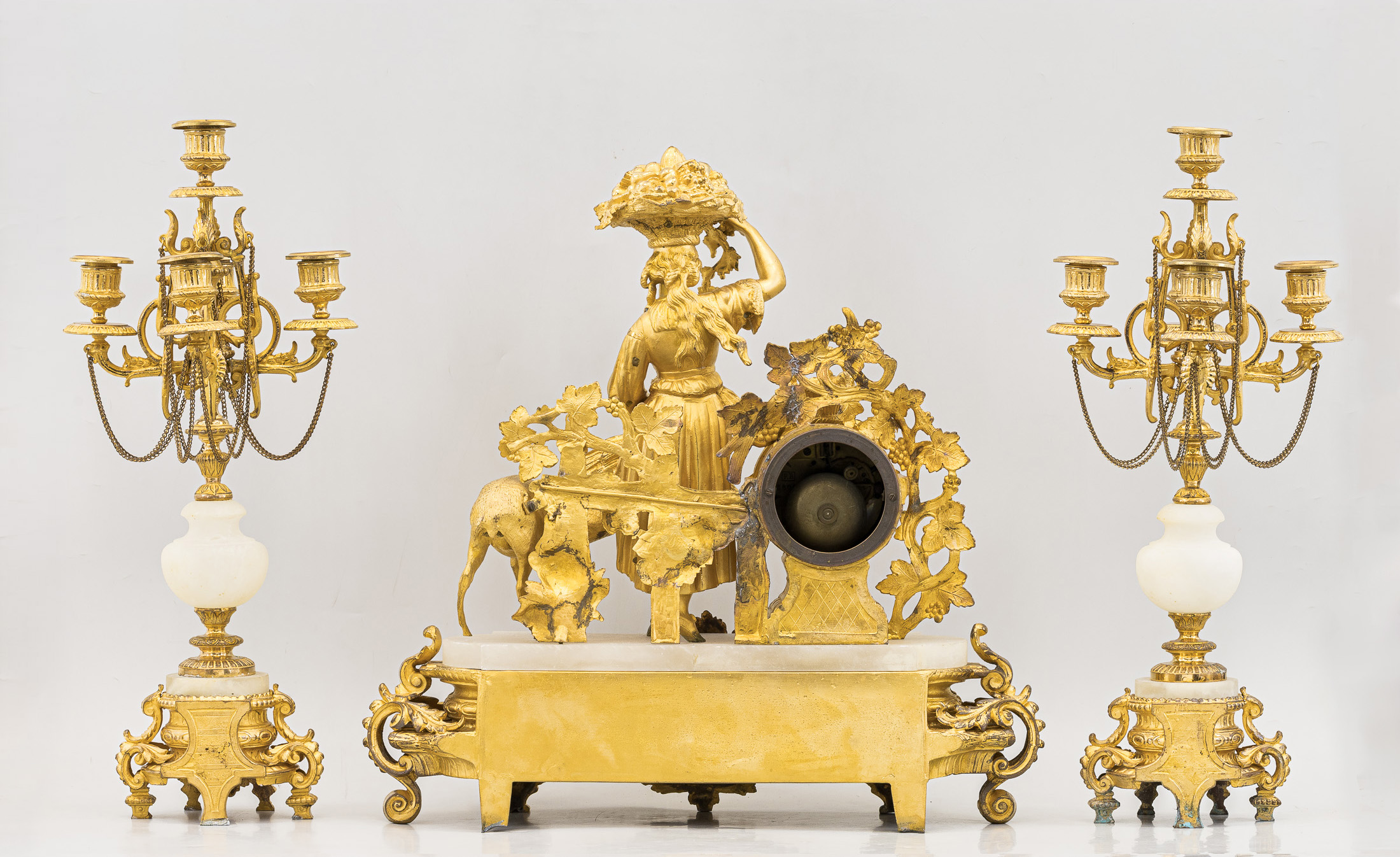 Размеры. Канделябры: высота 50 см, максимальная ширина 23 см. Часы (ДхШхВ) 46х15х49 см.