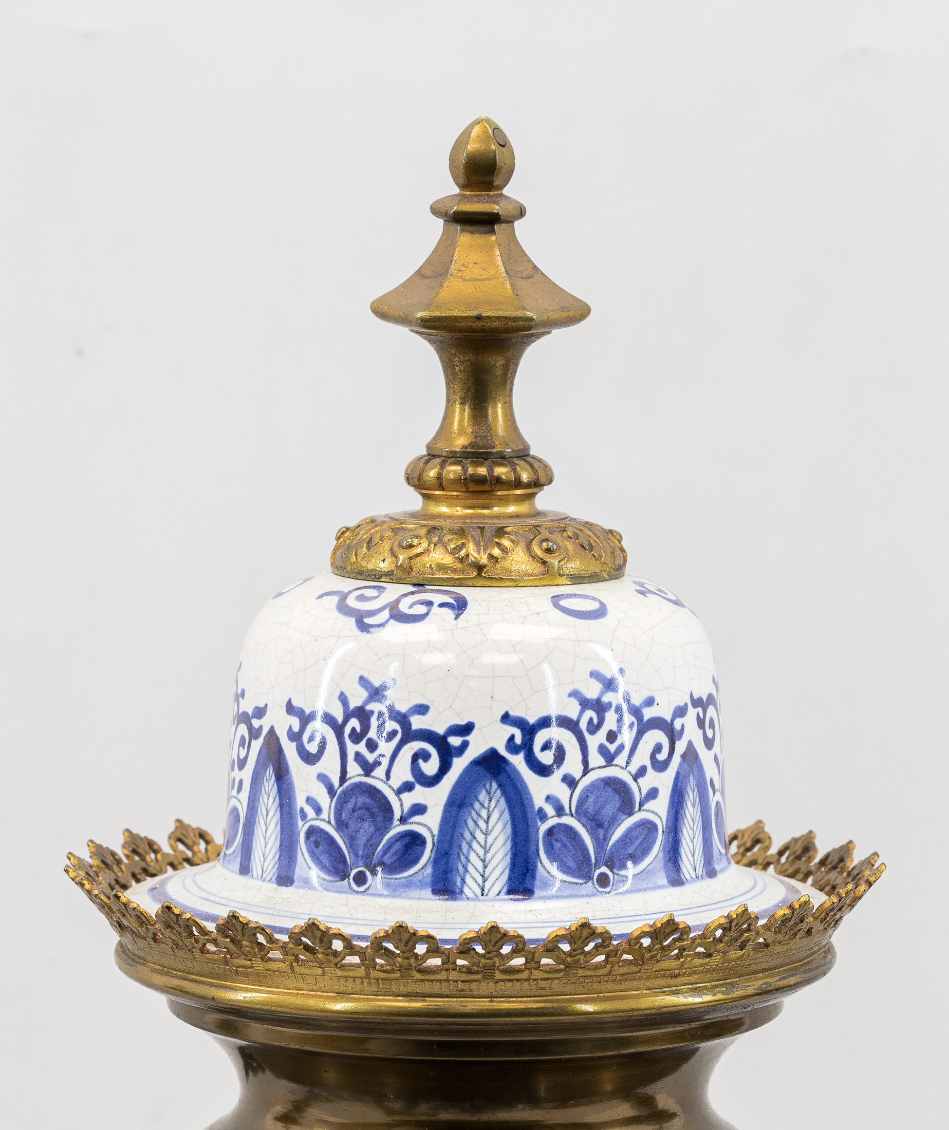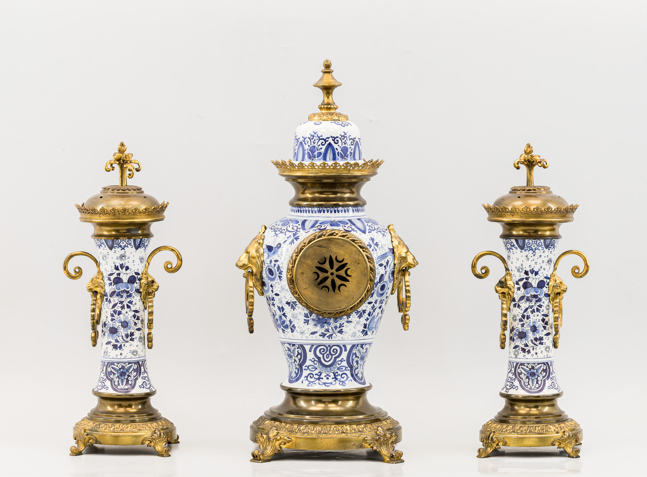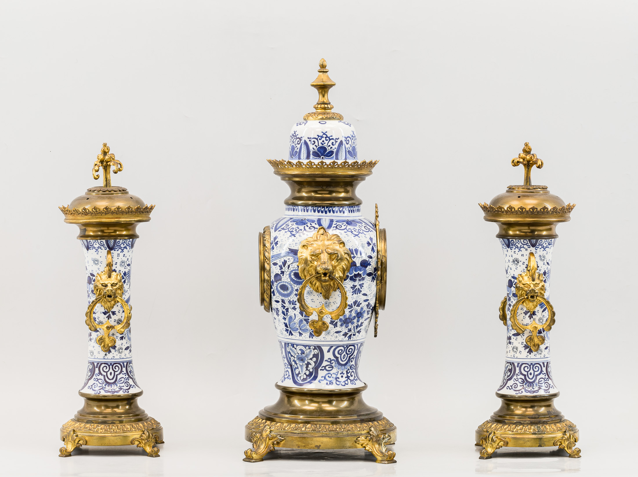 Фарфор, роспись кобальтом, глазурование; бронза, литье, золочение; эмалевый циферблат, часовой механизм.