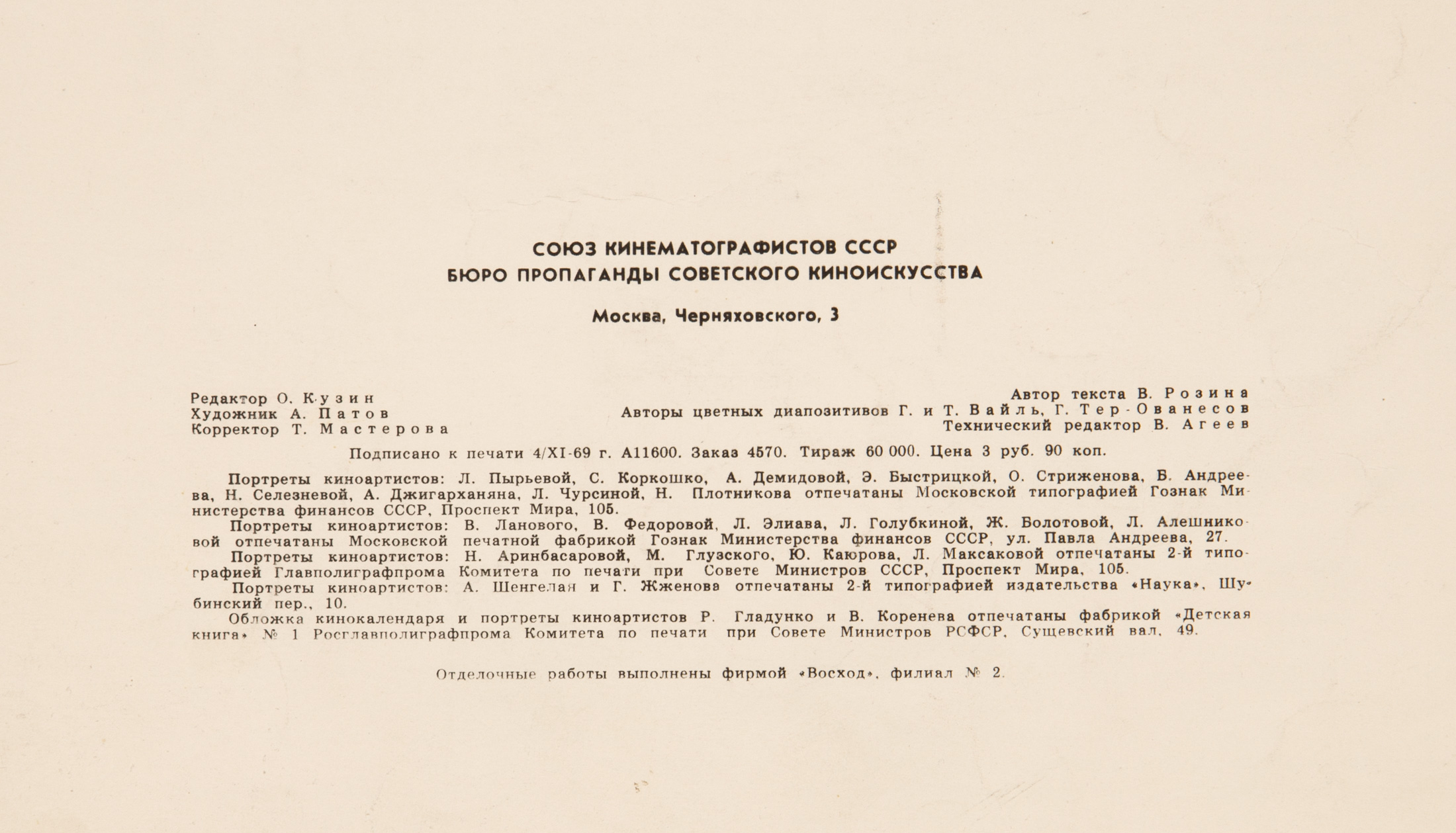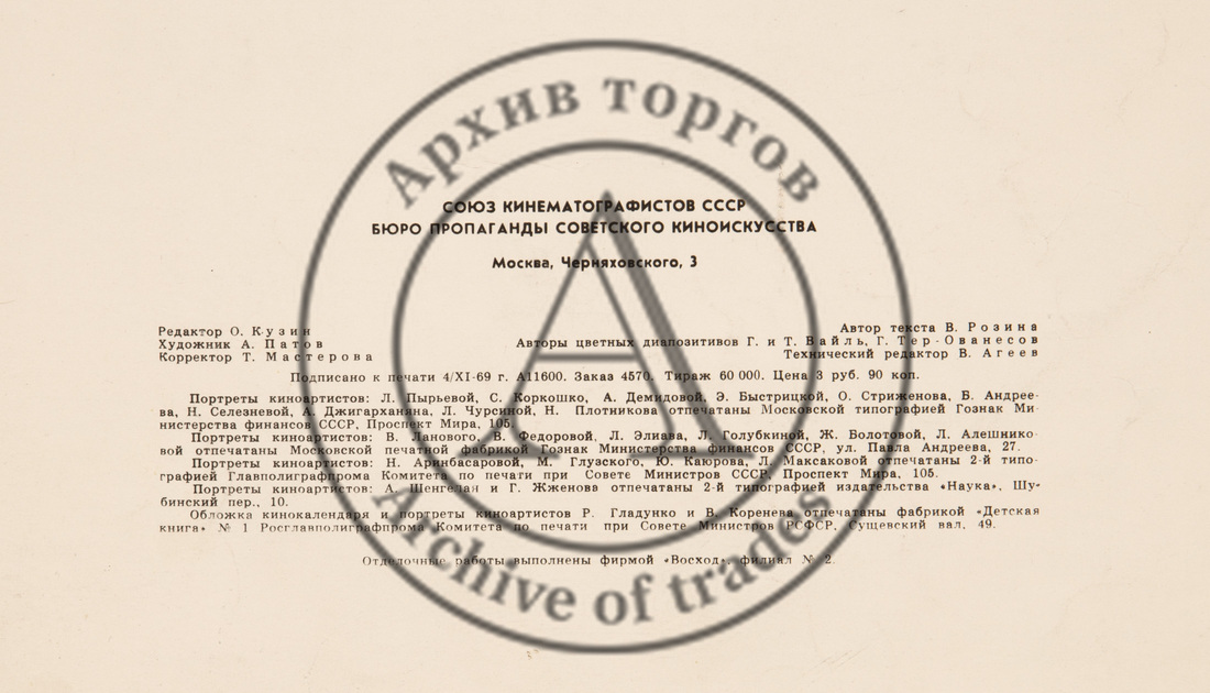 Кино календарь на 1970 г. / Союз кинематографистов СССР