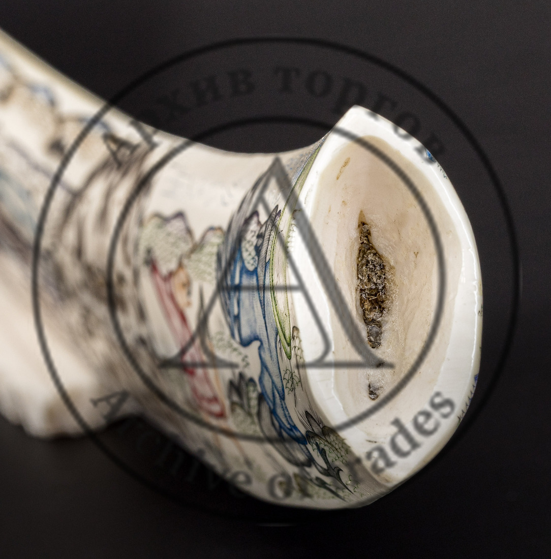 Клык моржа, резьба, цветная гравировка, монтировка.