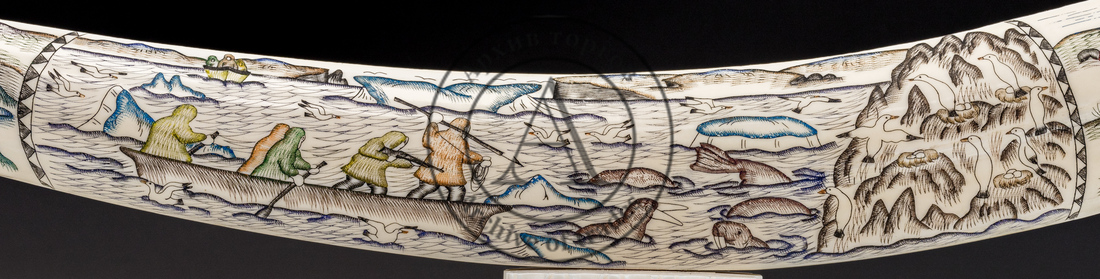 Клык моржа со сценами жизни коренных народов Чукотки