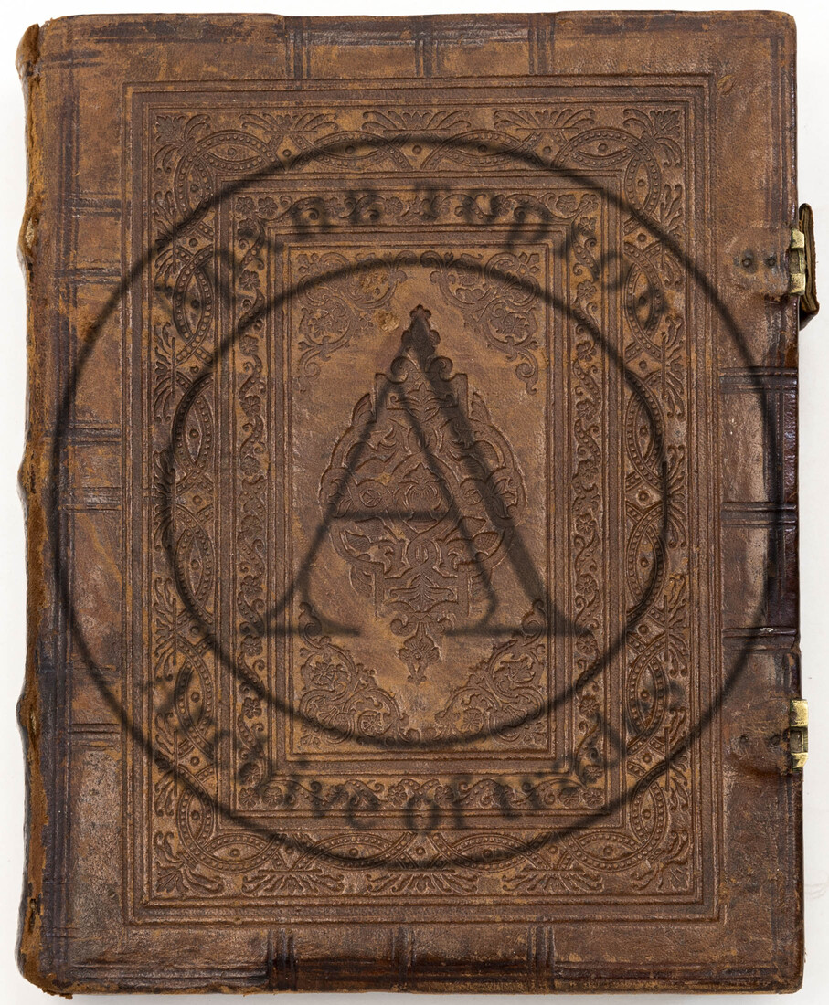 Сохранность: потертости переплета; утрачены обе застежки (одна полностью, одна частично); следы жучка; загрязнения от перелистывания страниц; плохо читаемые владельческие штампы на форзаце и нахзаце; владельческая пометка на первом листе.