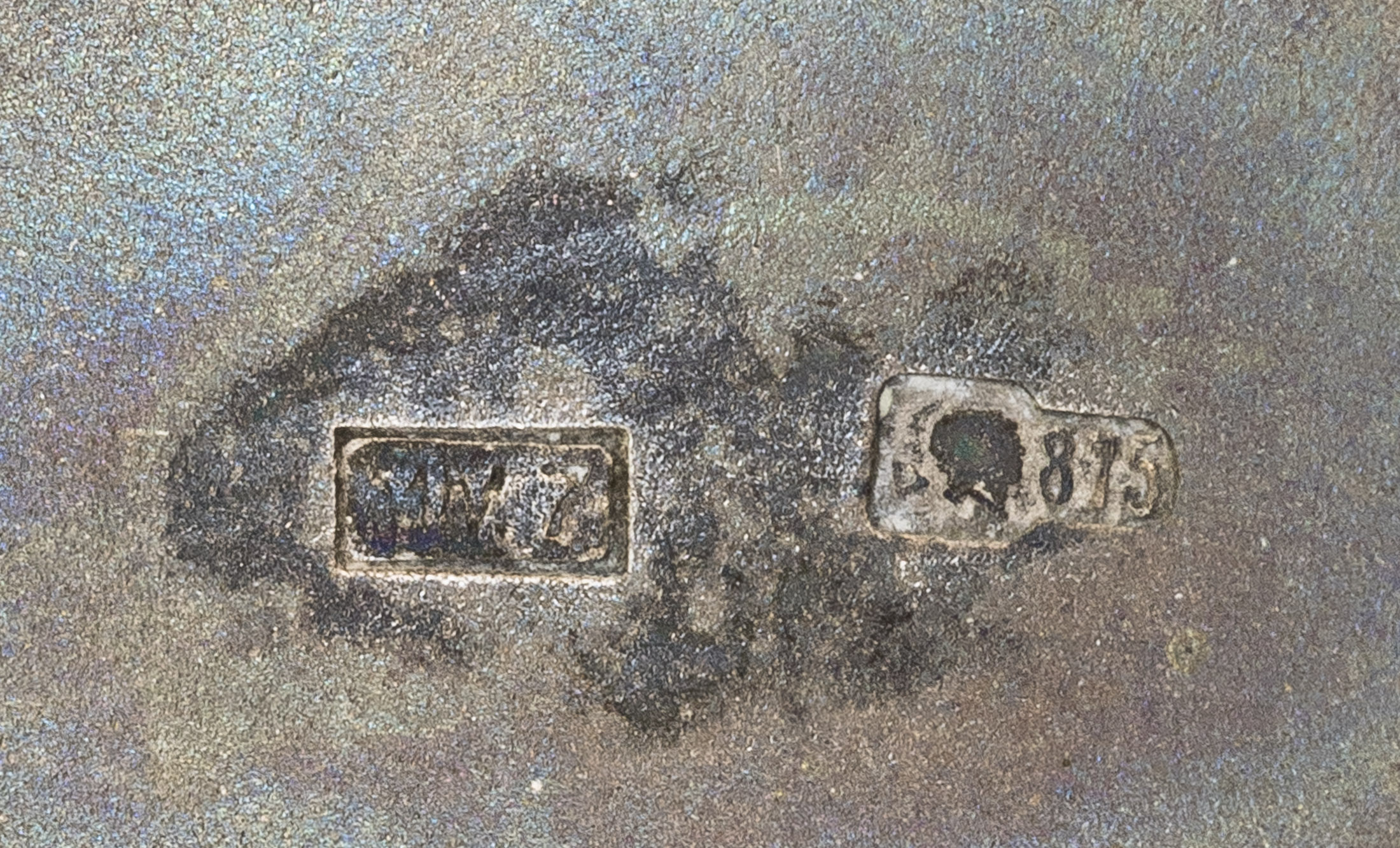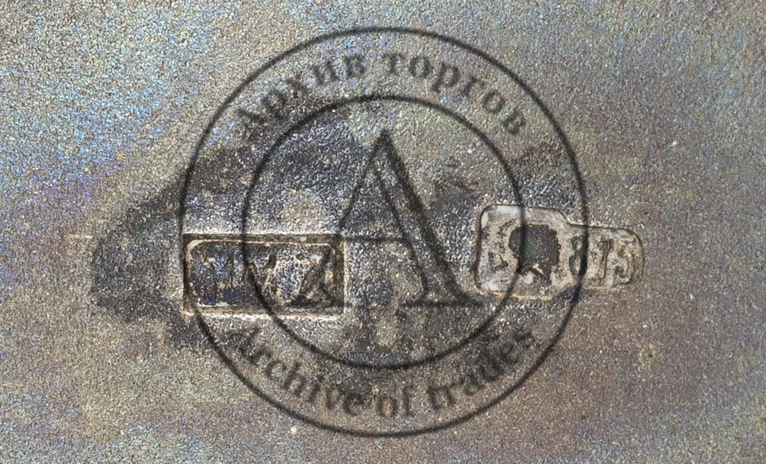 Клейма: 1) литера «Δ» (дельта), голова рабочего, обращенная вправо, с молотком и «875» в щитке в форме лопатки; 2) клеймо производителя с датой изготовления «ММ7» в прямоугольном щитке.