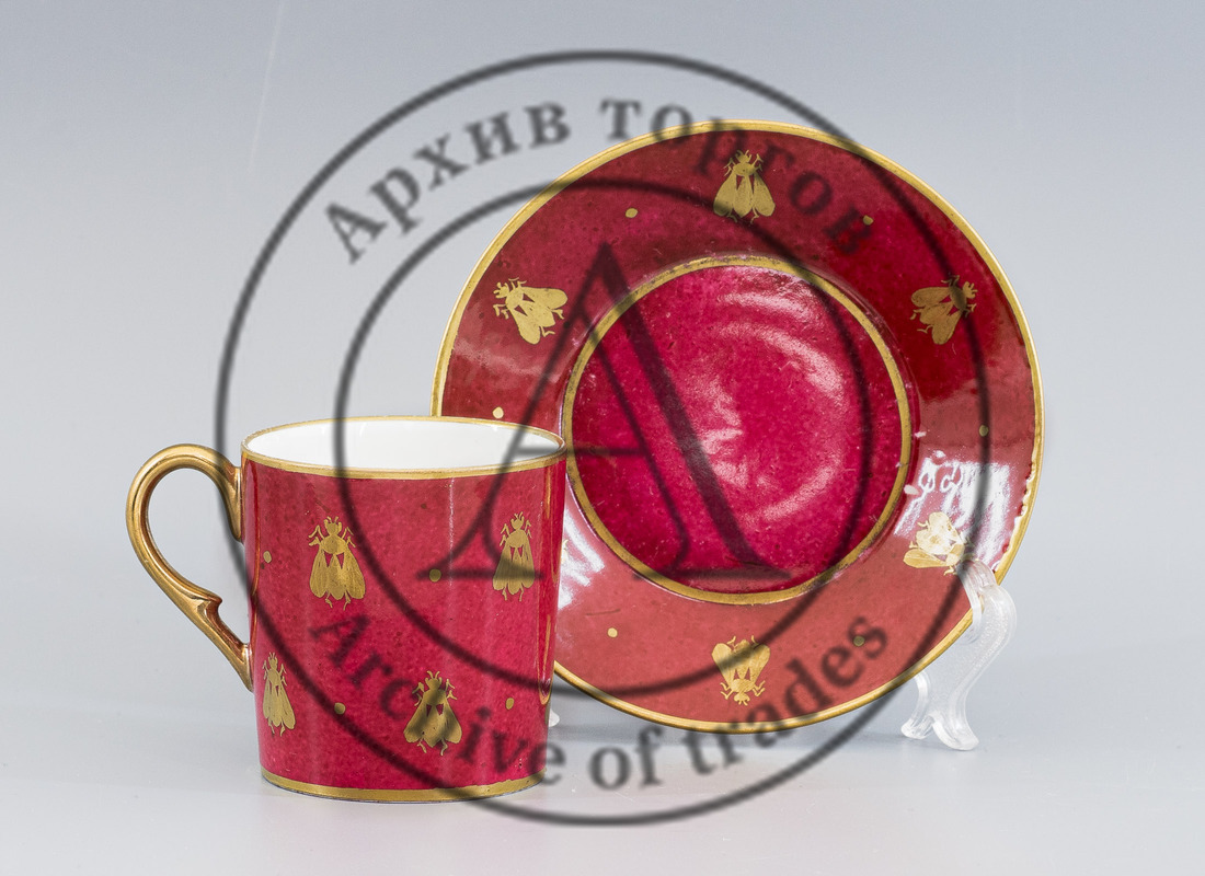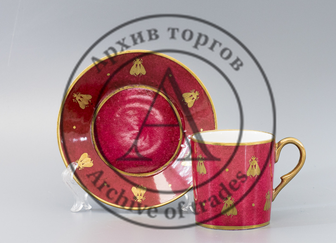 Кофейная пара с малиновым крытьем и изображением пчёл