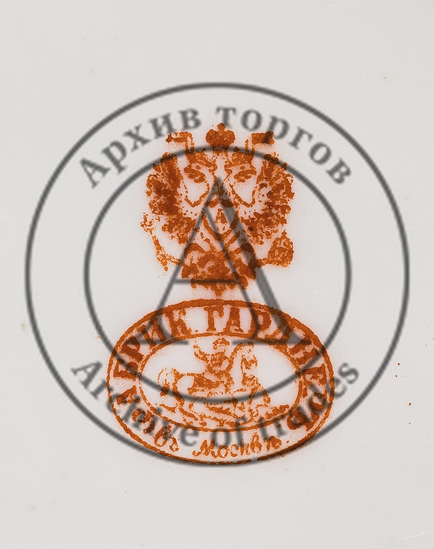 Марки: на чашках и блюдцах 1) двуглавый орел над двойным овалом с надписью «ФАБРИК ГАРДНЕРЪ» въ Москве» с изображением московского герба (Георгий Победоносец на коне поражает копьём дракона) внутри кольца (красная надглазурная) на всех предметах, кроме одной чашки; 2) «357» золотом от руки на блюдцах.
