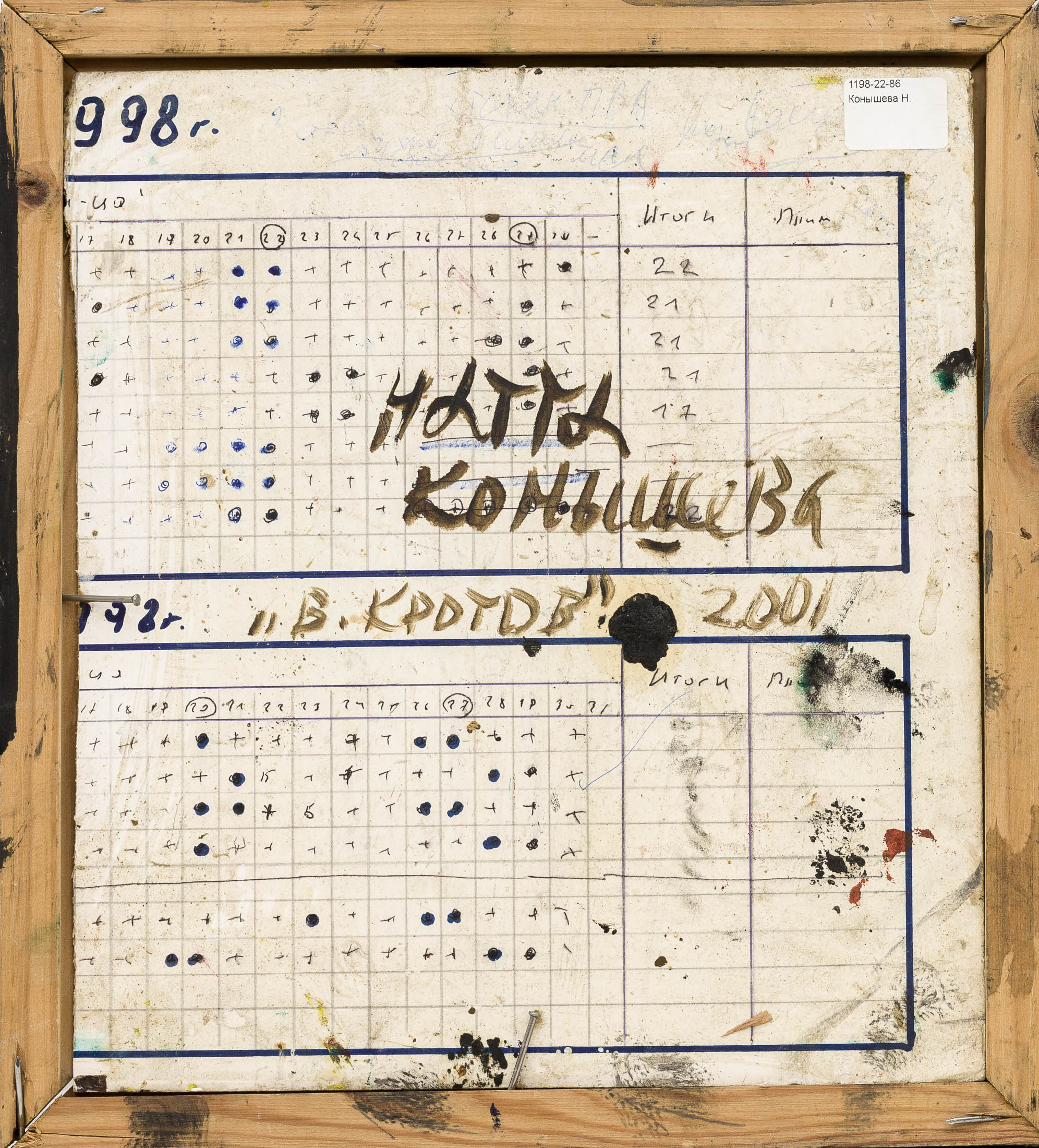 Натта Ивановна Конышева (1935-2022) - советская художница, член Московского союза художников, яркая представительница "советского авнагарда".  Училась в Московском полиграфическом институте ( выпуск 1959 года) у Э. Белютина и И. Чекмазова . Долгое время работала иллюстратором, параллельно участвуя в квартирных выставках.  Работы Конышевой хранятся в коллекциях Третьяковской галереи, Русского музея и других крупных собраниях. Персональные выставки художницы несколько раз проходили в России и во Франции.