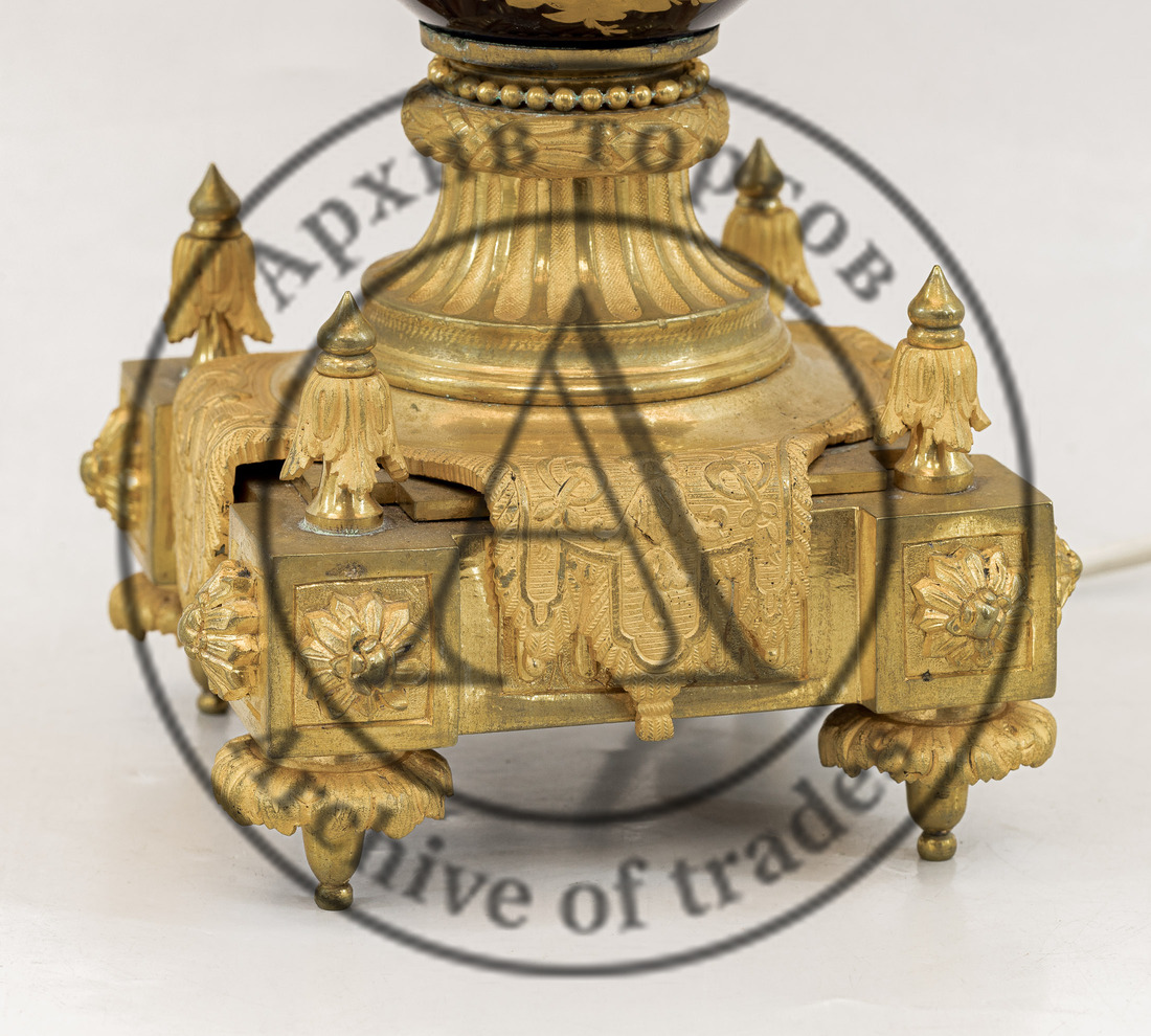 Сохранность: электрифицирована, в рабочем состоянии; незначительные потертости золочения, абажур в замене.