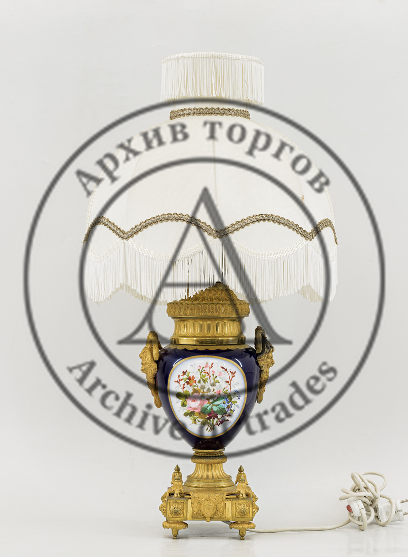 Бронза, литье, чеканка; фарфор, крытье, роспись, золочение; ткань (абажур).