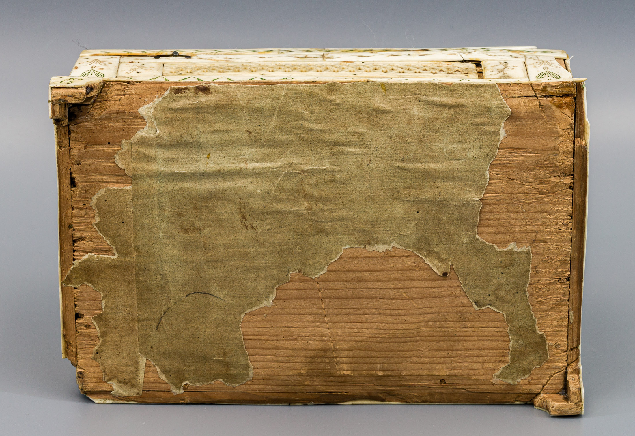 Деревянная основа, костяные пластины (резьба, гравировка), ткань, бумага, металл.