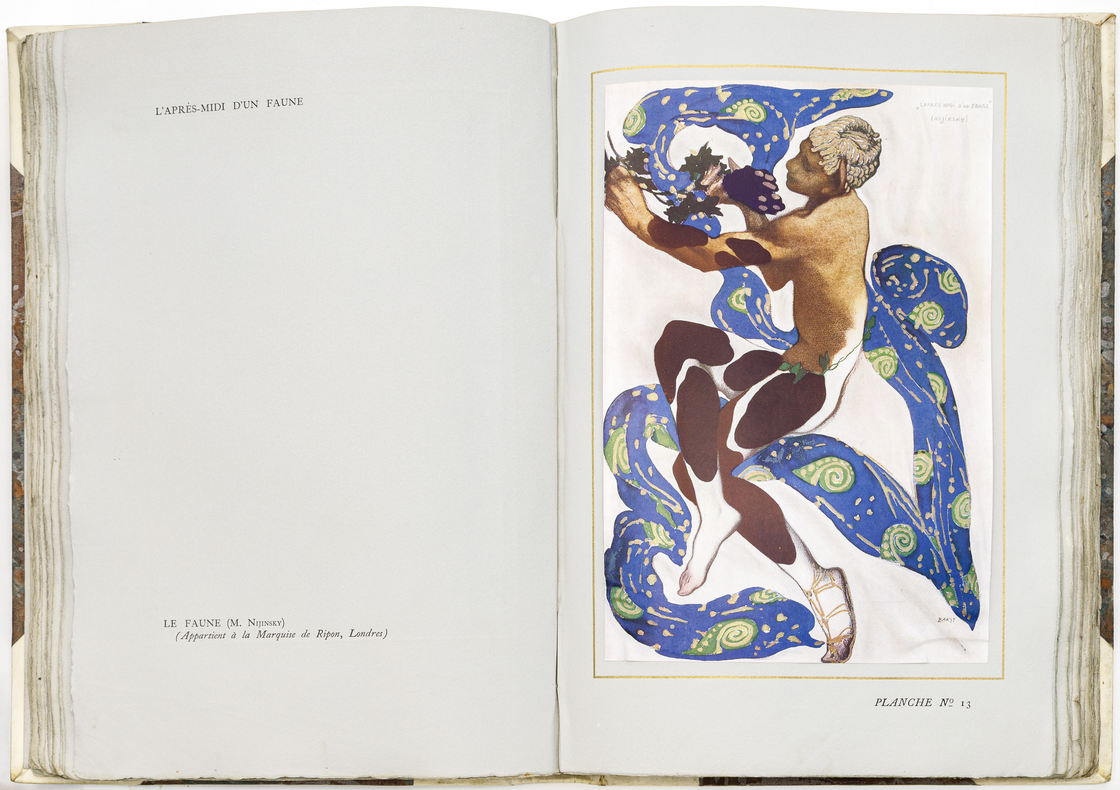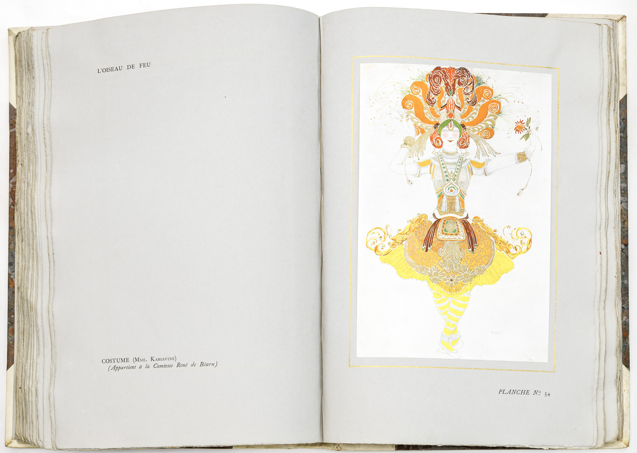 Настоящая книга вышла при жизни Льва Бакста (1866-1924), на пике его европейской славы. В ней собраны 77 эскизов костюмов и декораций к балетам «Русских сезонов» С.П. Дягилева 1908-1912 гг. Книга в момент выхода стала событием в культурной жизни Европы и выдержала несколько изданий. Очерк о декоративном искусстве Л. Бакста, его особенностях, ставших новым словом в европейской сценографии, написан крупнейшим французским художественным и театральным критиком Арсеном Александром (1859-1937). Комментарии к балетам создал молодой Жан Кокто (1889-1963), один из крупнейших французских писателей, художников и критиков эпохи модерна.