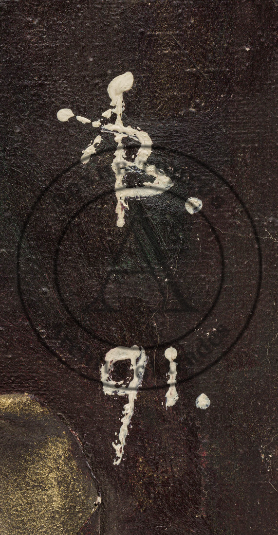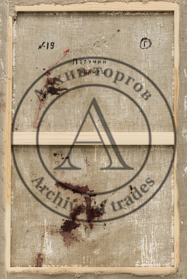 1991 год. Холст, коллаж, смешанная техника. 90 Х 60 см. Картина экспонировалась на выставке «Пиковая Дама» в ГТГ в 1994 году.