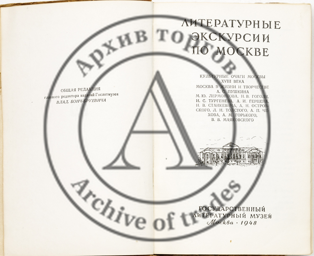Литературные экскурсии по Москве: культурные очаги Москвы XVIII века: Москва в жизни и творчестве А.С. Пушкина, М.Ю. Лермонтова, Н.В. Гоголя, И.С. Тургенева, А.И. Герцена, Н.В. Станкевича, А.Н. Островского, Л.Н. Толстого, А.П. Чехова, А.М. Горького, В.В. Маяковского / Общ. ред. В. Бонч-Бруевича
