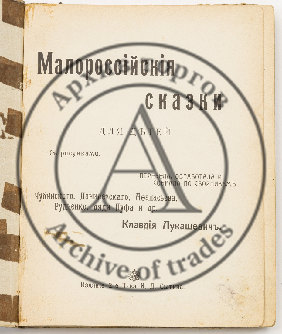 Лукашевич К.В. Малороссийские сказки для детей: Перевела, обработала и собрала по сборникам Чубинского, Данилевского, Афанасьева, Рудченко, Дяди Пуфа и др. Клавдия Лукашевич — 2-е изд.