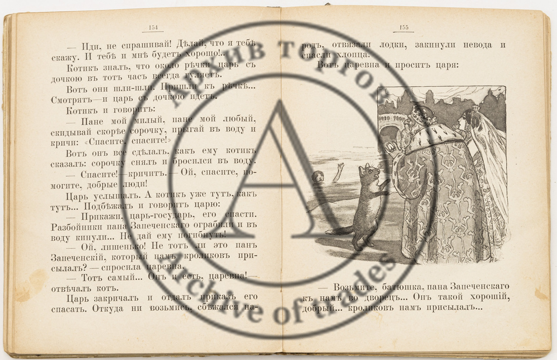 Сохранность: сильная трещина по корешку; форзац, нахзац и оборотная обложка подклеены скотчем; разломы в блоке; надрывы некоторых страниц; две иллюстрации раскрашены.