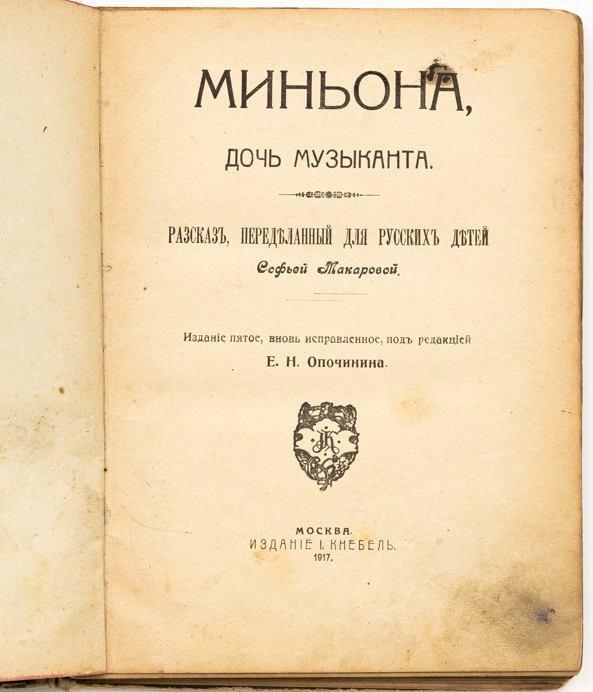 Макарова С.М. Миньона, дочь музыканта: Рассказ, переделанный для русских детей — 5-е изд.