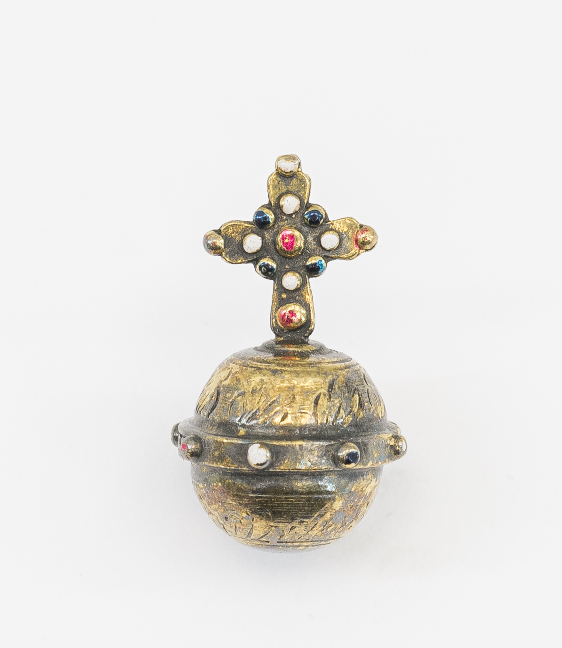 Размеры: диаметр короны 2,2 см; высота державы 2 см; длина скипетра 6,5 см; коробка 9,5х7,5х2,5 см.