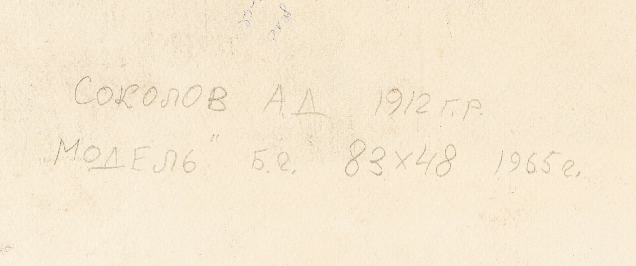 Соколов Алексей Дмитриевич (1912 - 2004). Родился в 1912 году в городе Спасске, Пензенской обл. Участник ВОВ. В 1948 г. окончил Московский госуд. худож. институт им. В.И. Сурикова, учился у Осьмеркина, Чернышева, Корина, Чуйкова. Член Союза художников с 1951 г. Работы находятся в музеях, галереях, частных собраниях России, стран СНГ, США, Франции, Германии, Японии, Италии и др. Персональные выставки состоялись в Москве и других городах России, а также за рубежом. Участник московских, республиканских и всесоюзных выставок.