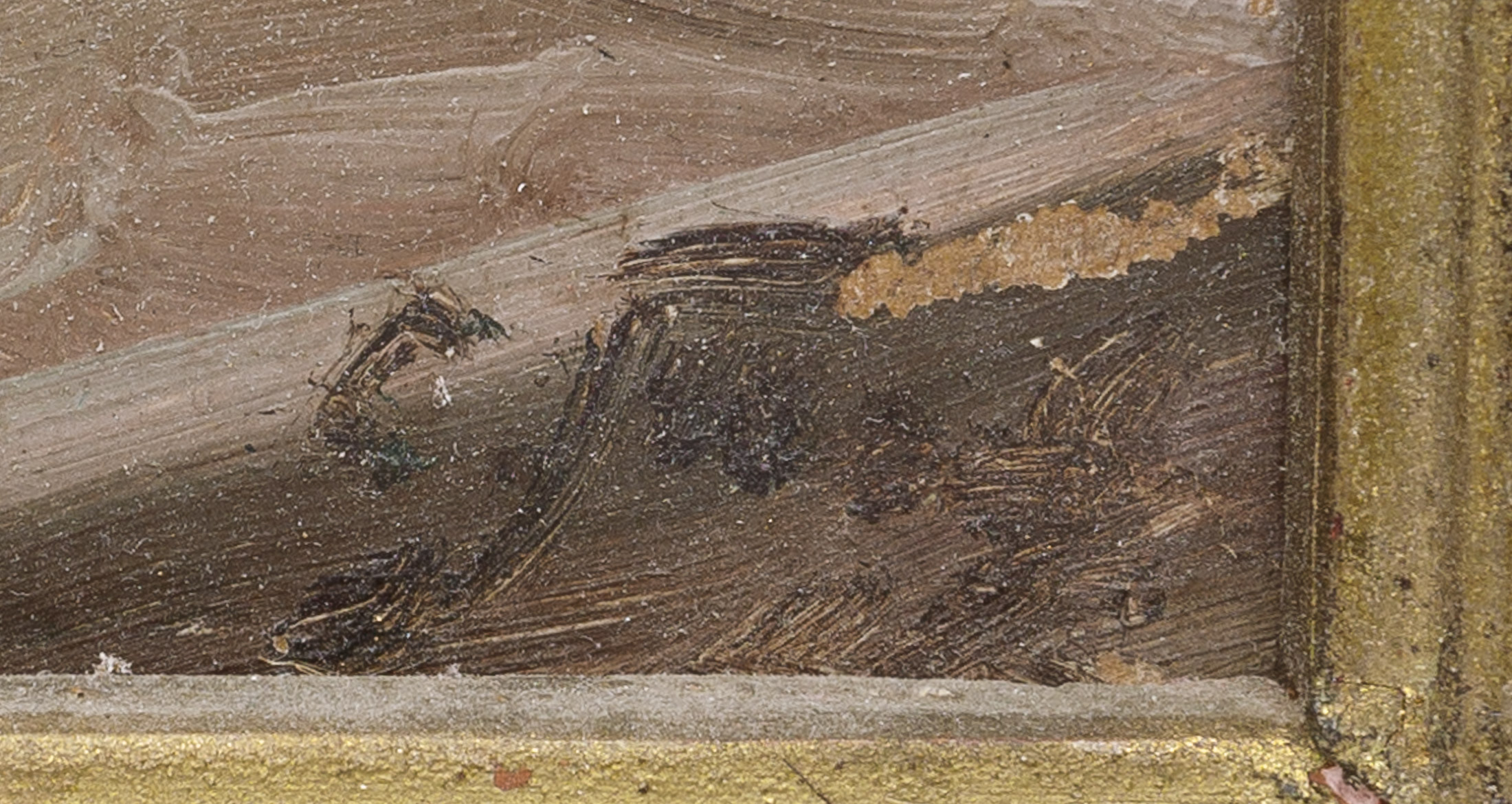 СССР, 1940-е годы. Картон на фанере, масло. 30 Х 42 см. Подпись справа внизу. В раме. Загрязнения, повреждения по краям, осыпи.