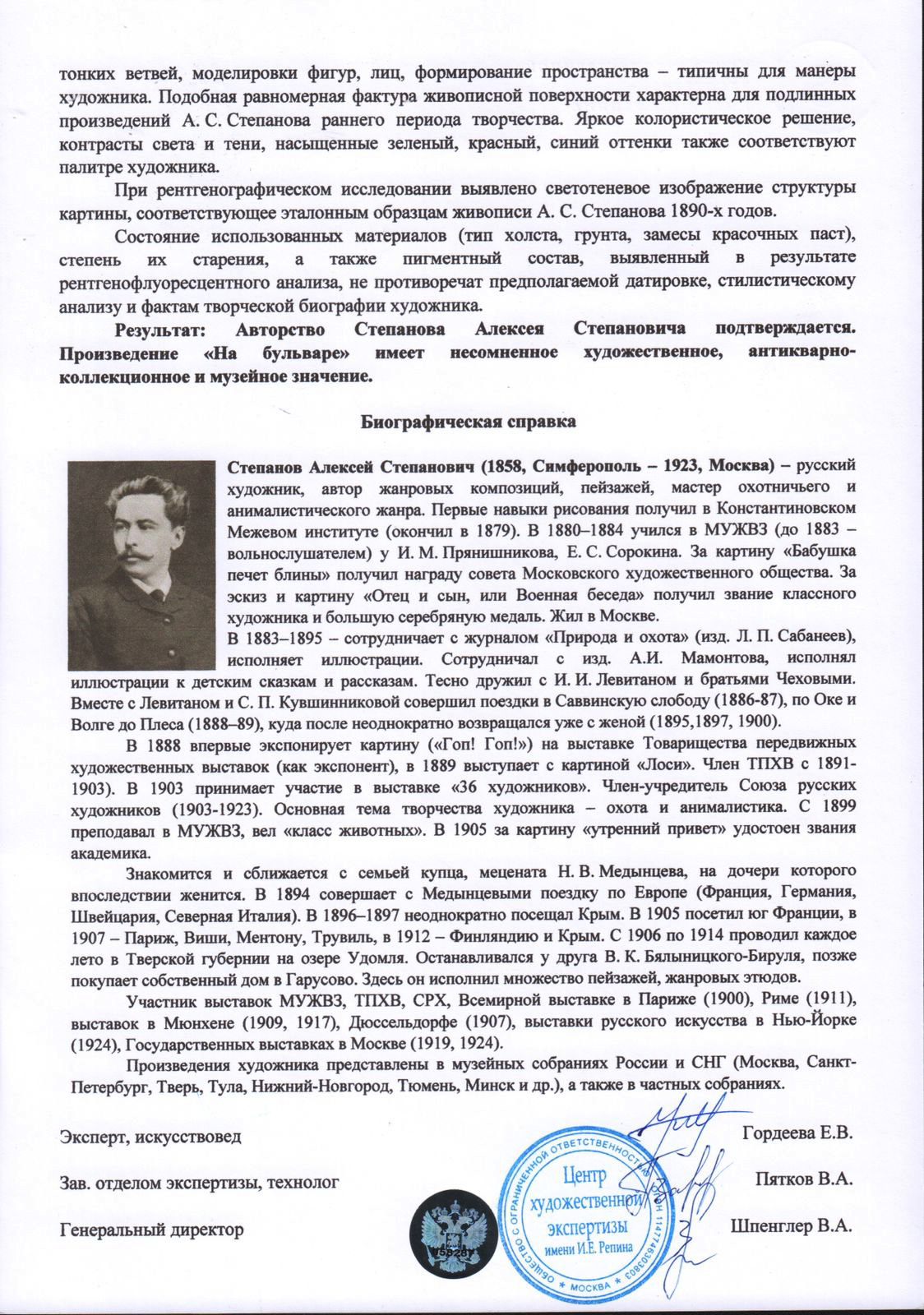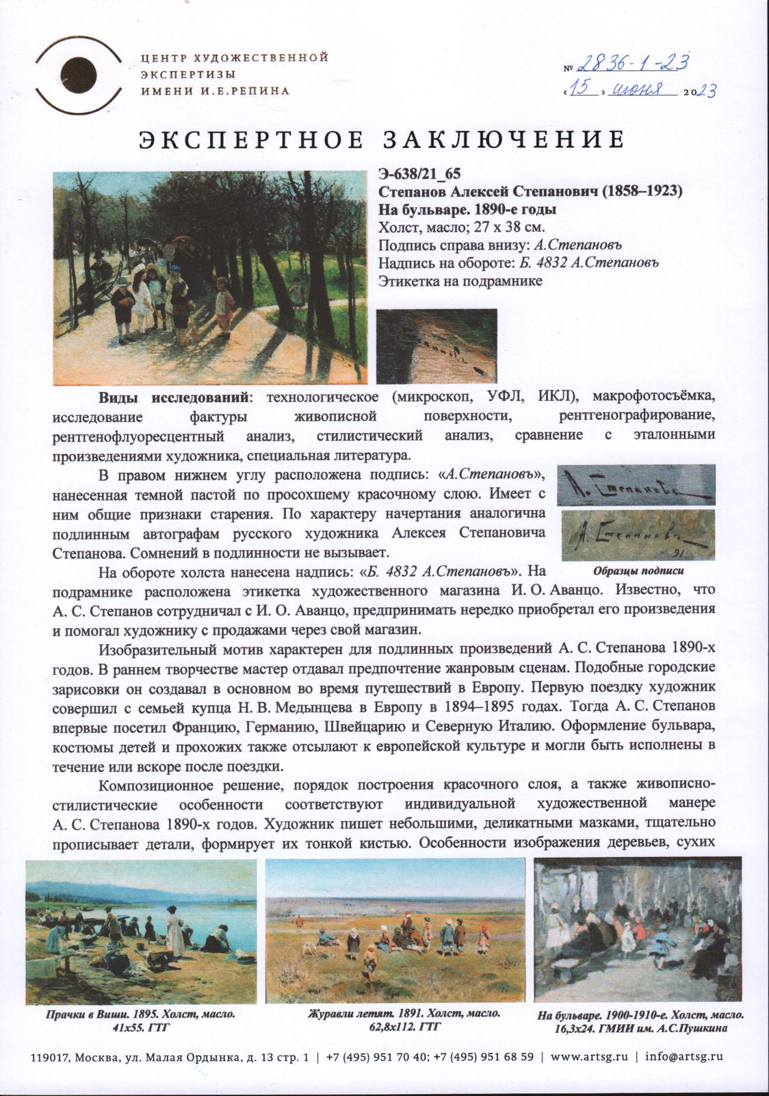 Экспертное заключение ЦХЭ им. Репина ( эксперт Гордеева Е., 2023 год).