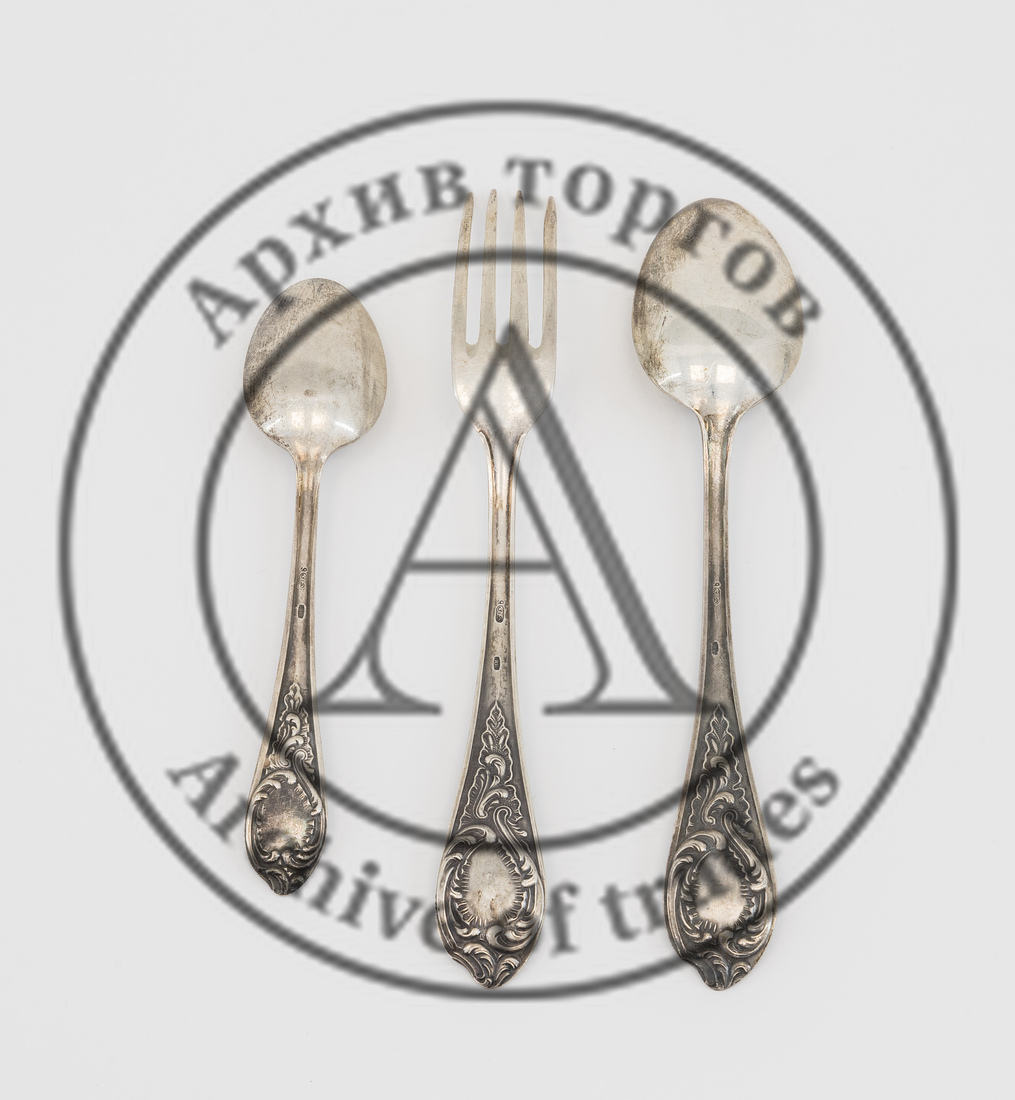 Размеры: длина вилки 18 см, длина салатной ложки 18 см, длина чайной ложки 14 см.