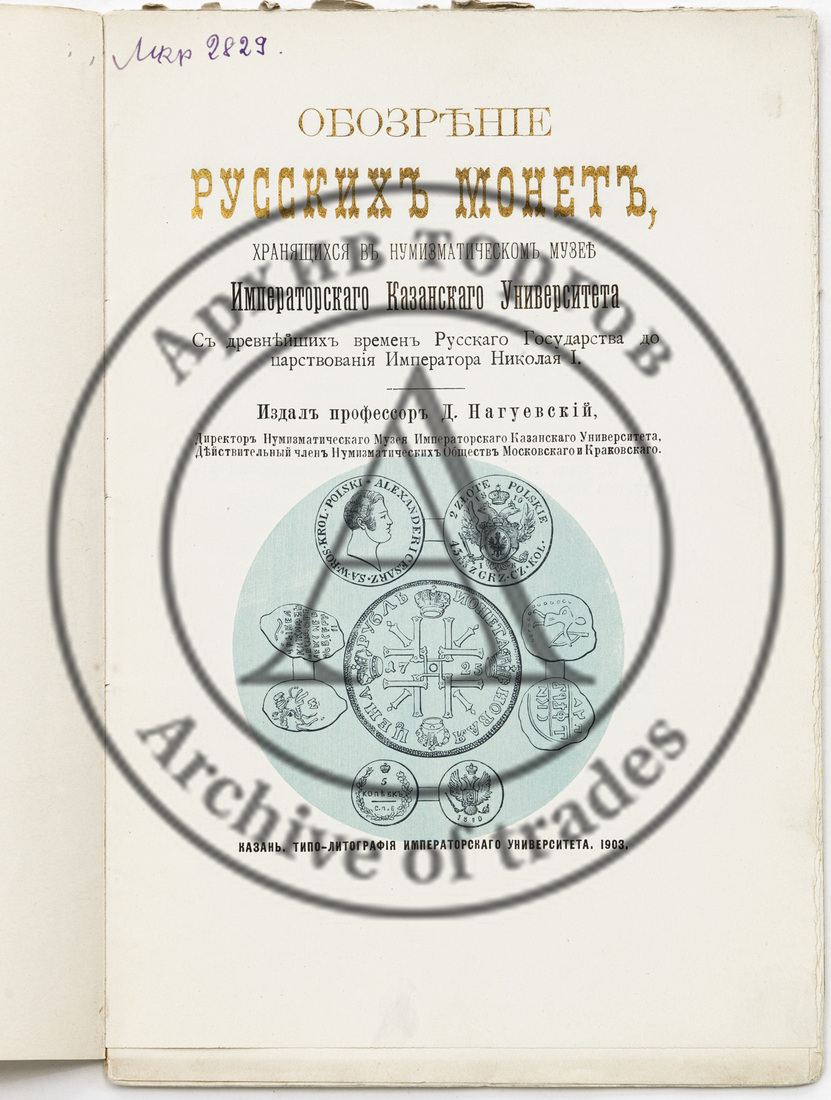 Нагуевский Д.И. Обозрение русских монет, хранящихся в нумизматическом музее Императорского Казанского университета, с древнейших времен Русского государства до царствования Императора Николая I