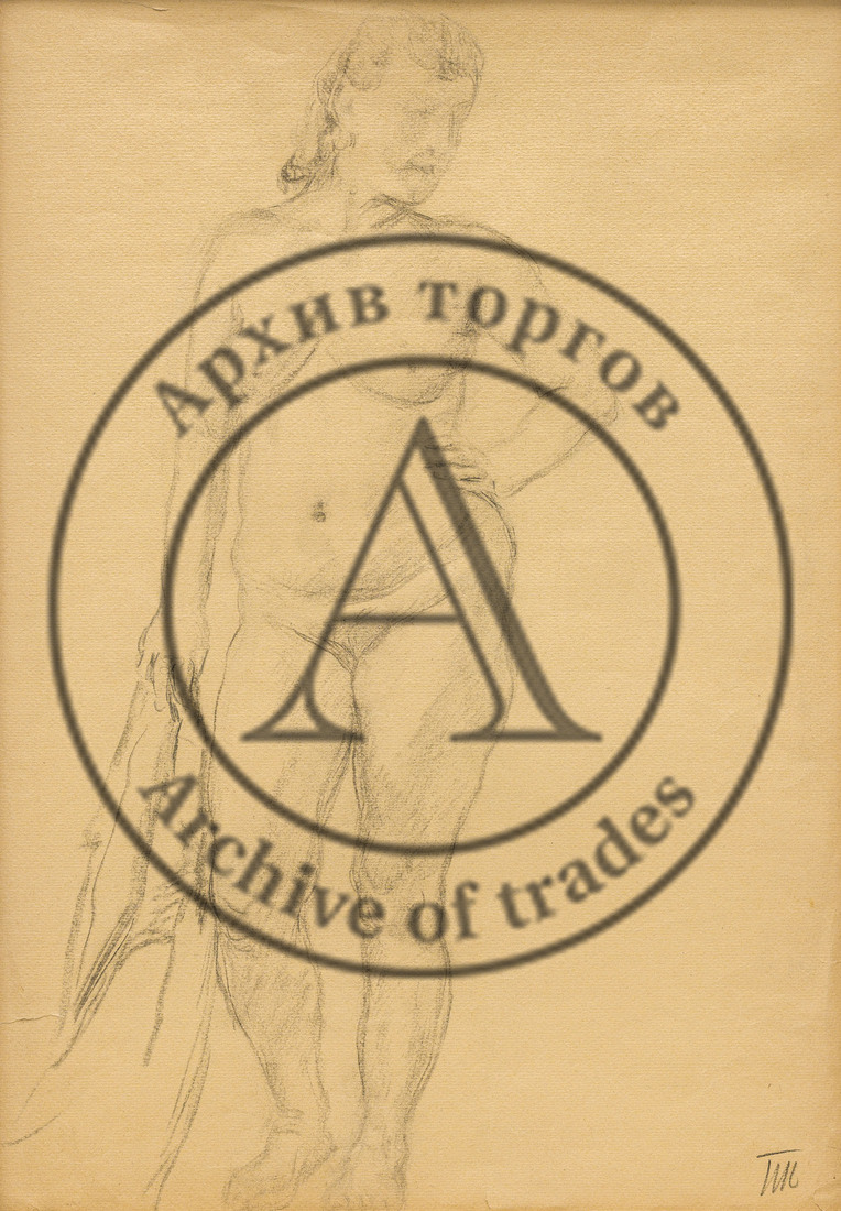 Россия, 1910-1920-е гг. Бумага, карандаш. 58 х 40 см (в свету). Подпись справа внизу. Рисунок в раму, паспарту, под стеклом.