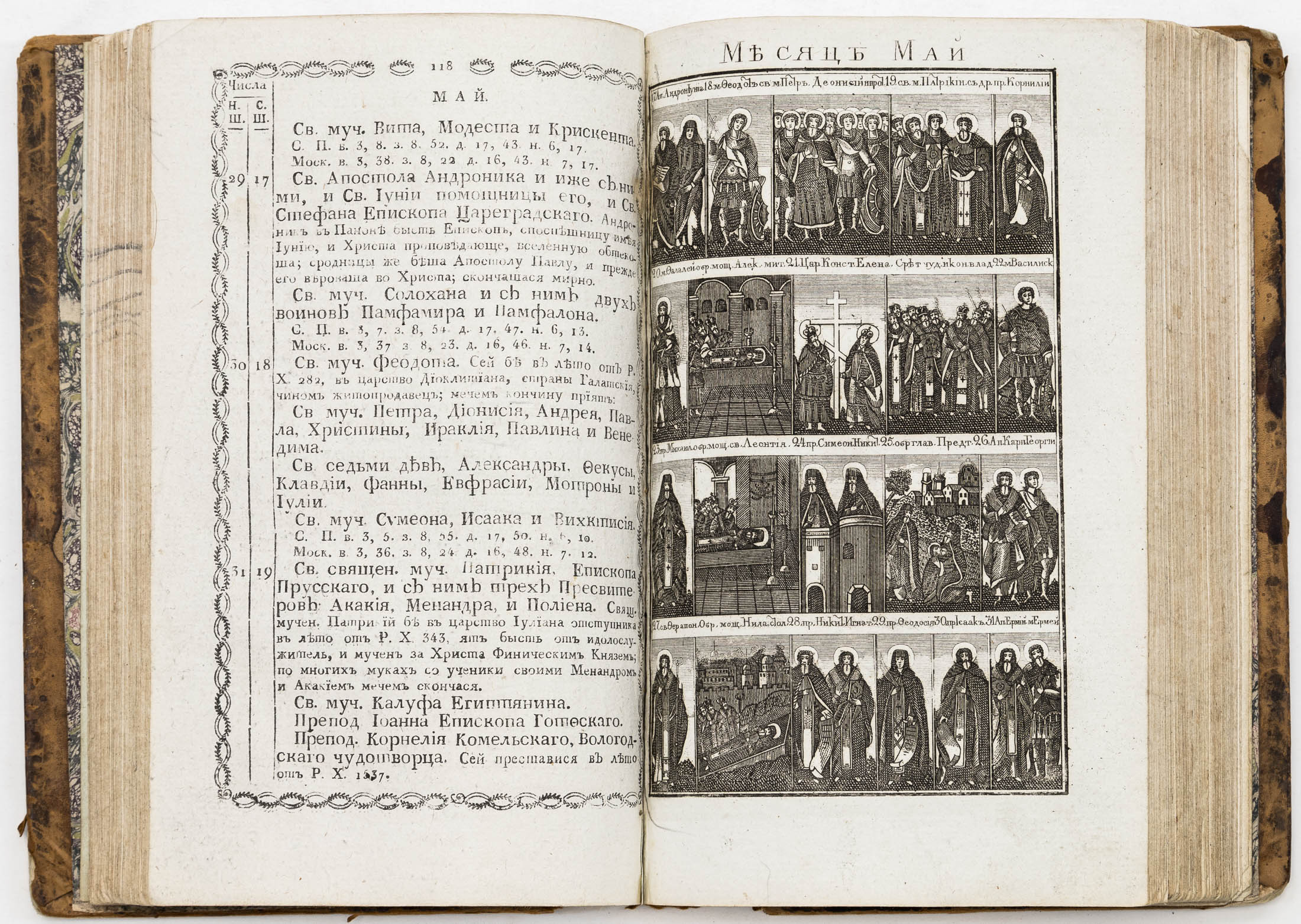Сохранность: непрофессиональная реставрация корешка (проклеен бумагой); обе крышки переплета отходят от блока; загрязнения и сильные потертости переплета; владельческие пометки, рисунки и каракули на оборотах форзаца, нахзаца и части гравюр; утрачен лист с посвящением митрополиту Серафиму и стр. 307/308; надрыв стр. 309/310.