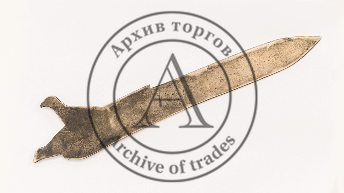 Сохранность: патина, окислы, незначительная деформация и забоины по краям острой части.