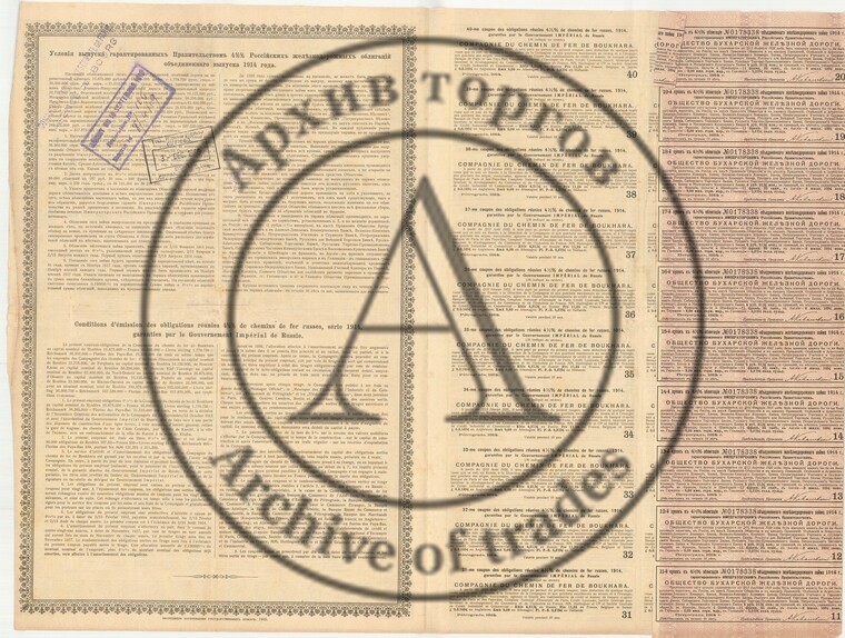 Облигация Бухарской железной дороги. Россия.