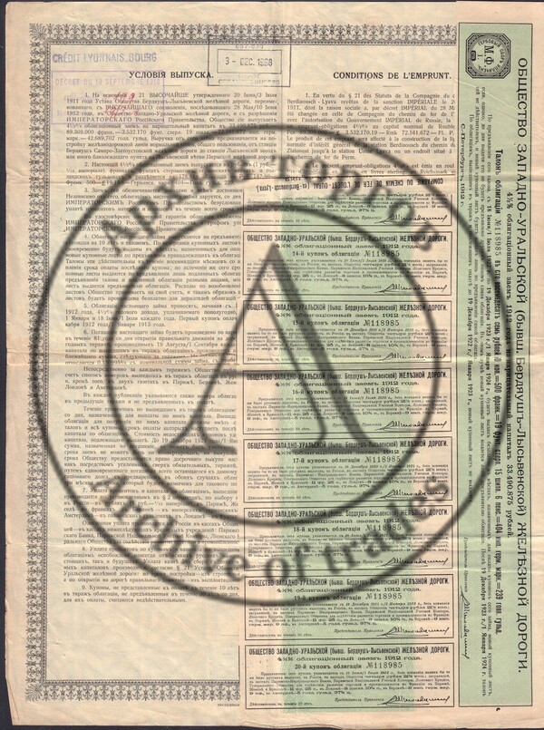 С купонами. Отметка о гашении по франко-российскому меморандуму 1996 г.