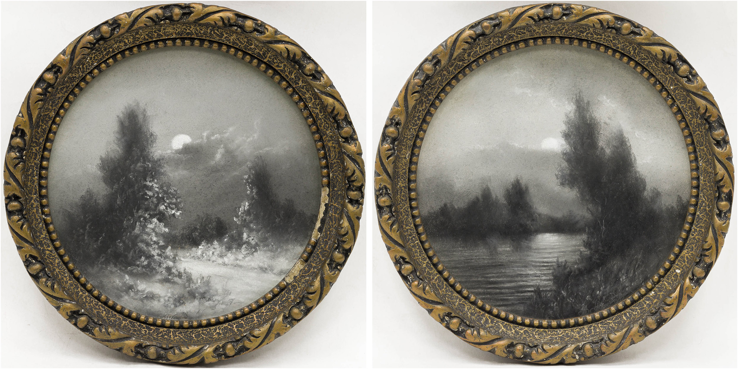 Западная Европа, начало 20 века. Картон, акварель, белила, карандаш. диаметр 25,5 см. Подпись внизу ( на каждой) оформлены в старинную раму, под стеклами