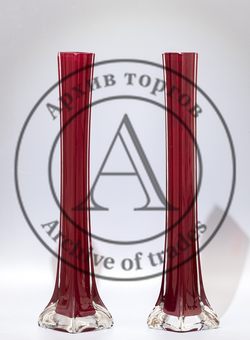 Парные вазы «Берц» с рубиновым нацветом