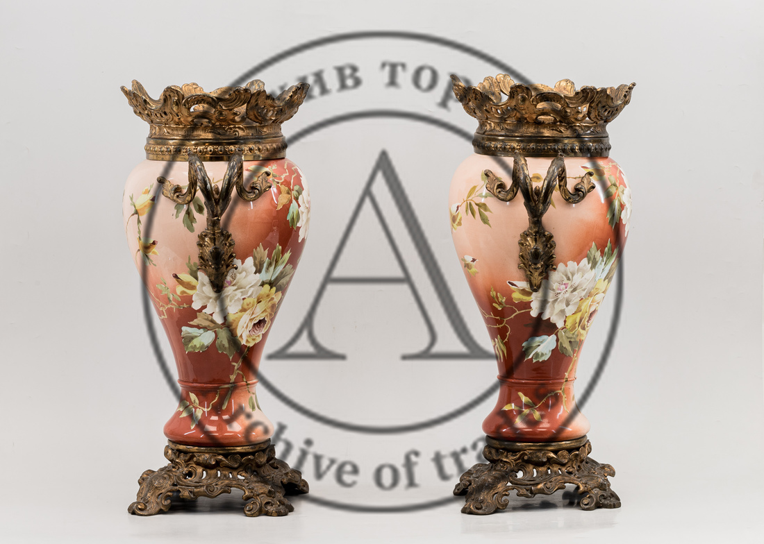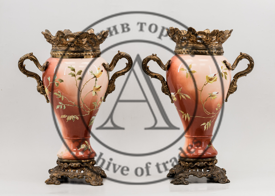Парные вазы с красным крытьем и изображением цветов