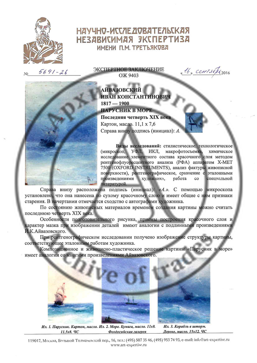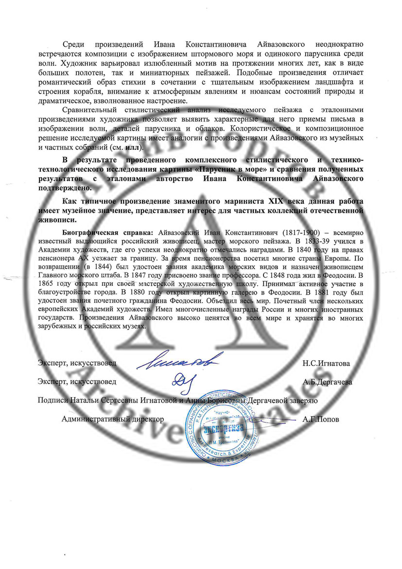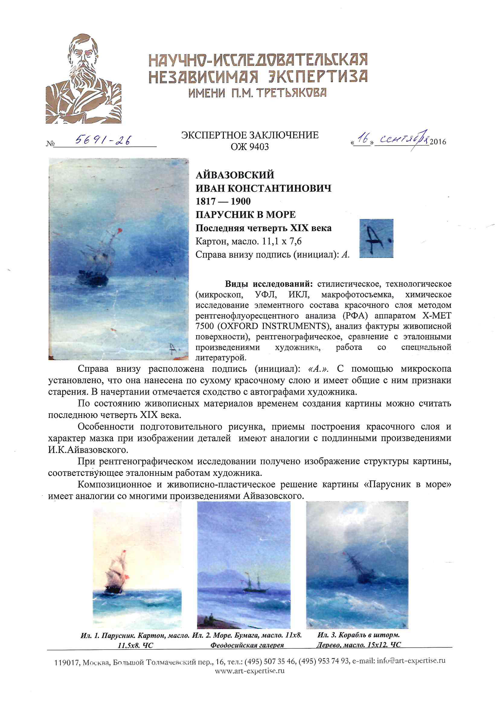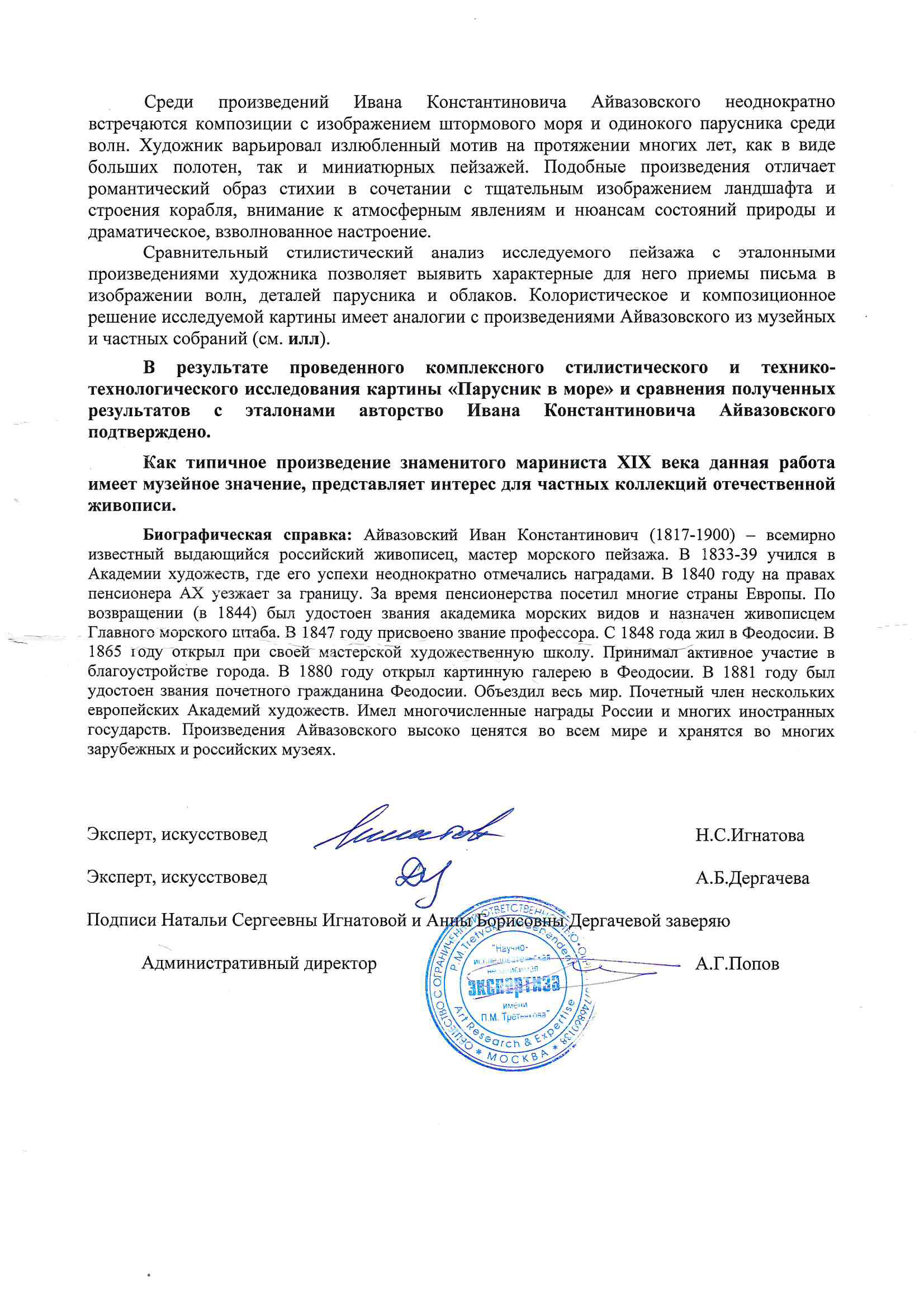 Экспертное заключение НИНЭ им. Третьякова (эксперт Игнатова Н.С. 2016 год).