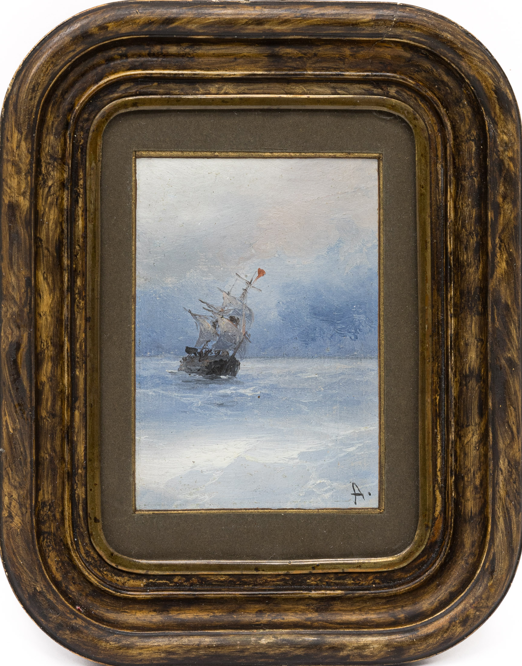 Россия, последняя четверть ХIХ века. Картон, масло. 11,1 Х 7,6 см. Справа внизу подпись (инициал) А. В раме.