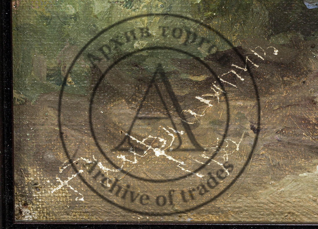 СССР, 1929 год. Холст на картоне, масло. 20 Х 28 см. Подпись и дата слева внизу. В раме