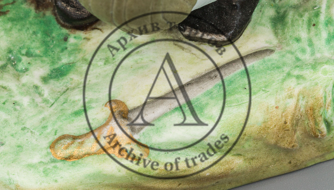 Сохранность: незначительные реставрационные вмешательства (шляпа, небольшой фрагмент на исподе дна).