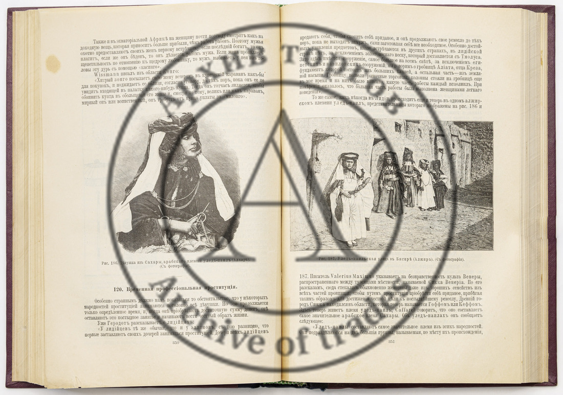 Сохранность: некоторые страницы проклеены бумагой и калькой по краям; редкие загрязнения листов в блоке; стр. 223-230 вшиты между стр. 210 и 211.