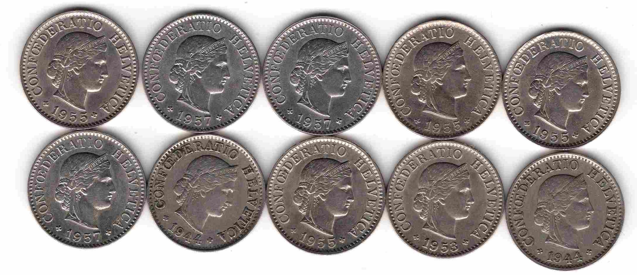 Подборка 5 раппенов 10 шт. Швейцария