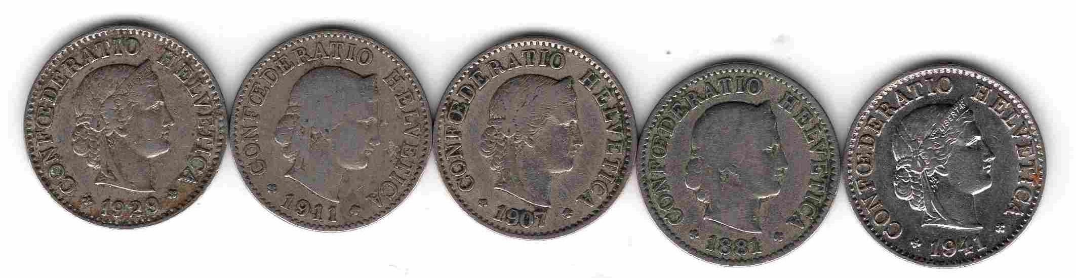 Подборка 5 раппенов. 5 шт. Швейцария