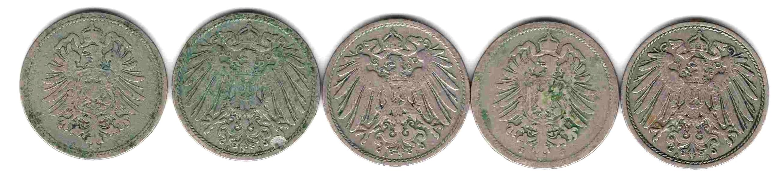 Подборка монет 10 пфеннигов Германия 5 шт.