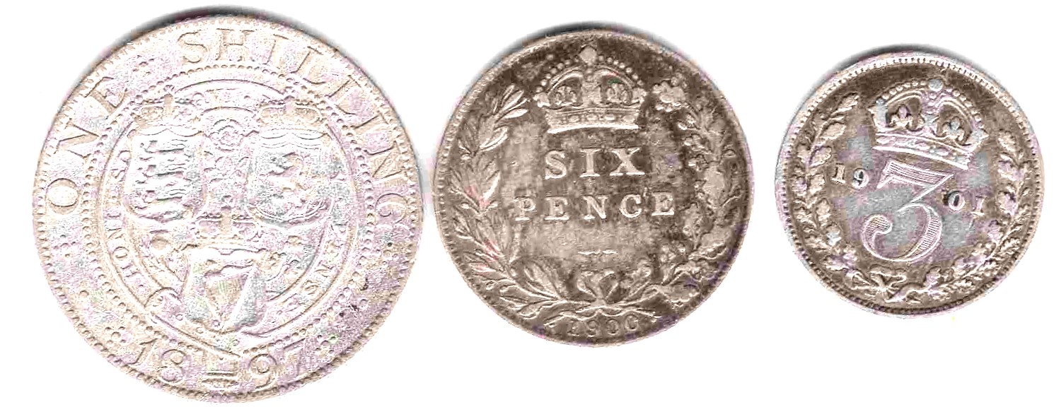 Серебряные разменные монеты с поздним портретом королевы Виктории.