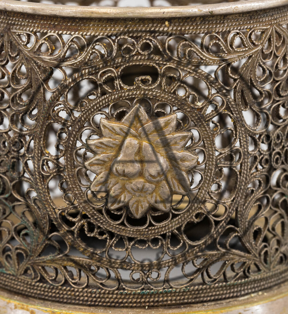 Высота 8,5 см, диаметр верха 7 см, диаметр основания 8 см.