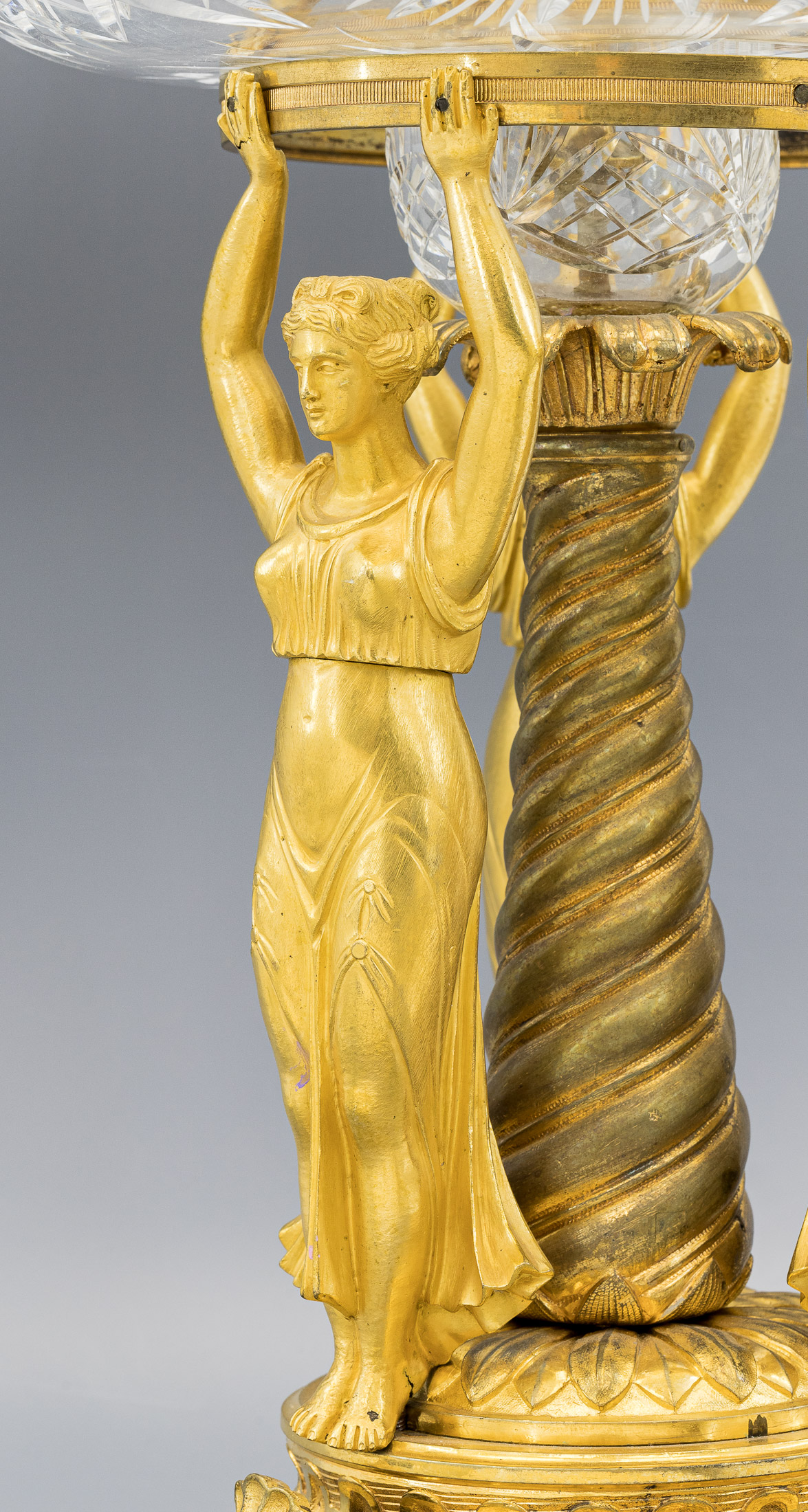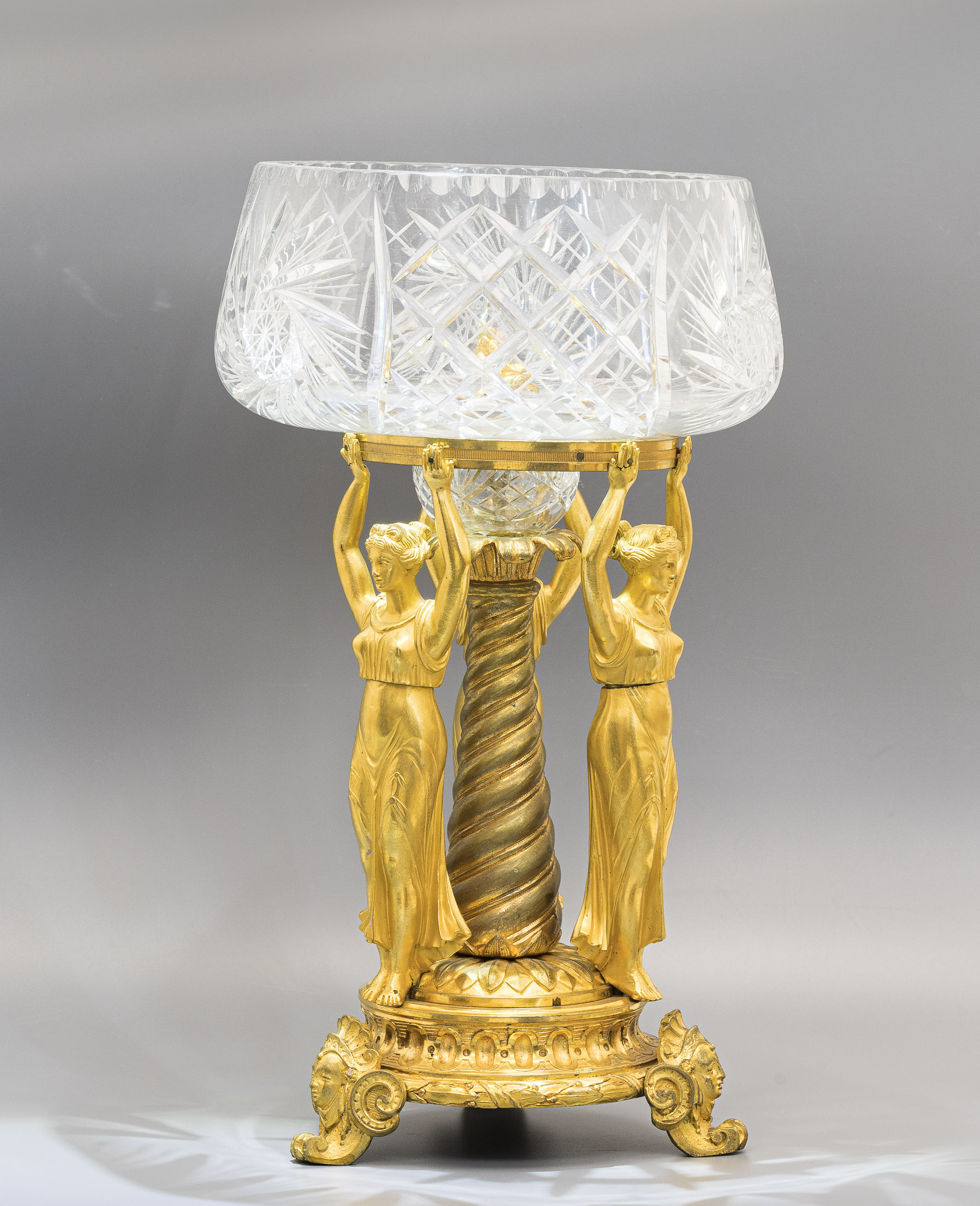 Бронза, литье, золочение; металлическое крепление; хрусталь, резьба, гранение.