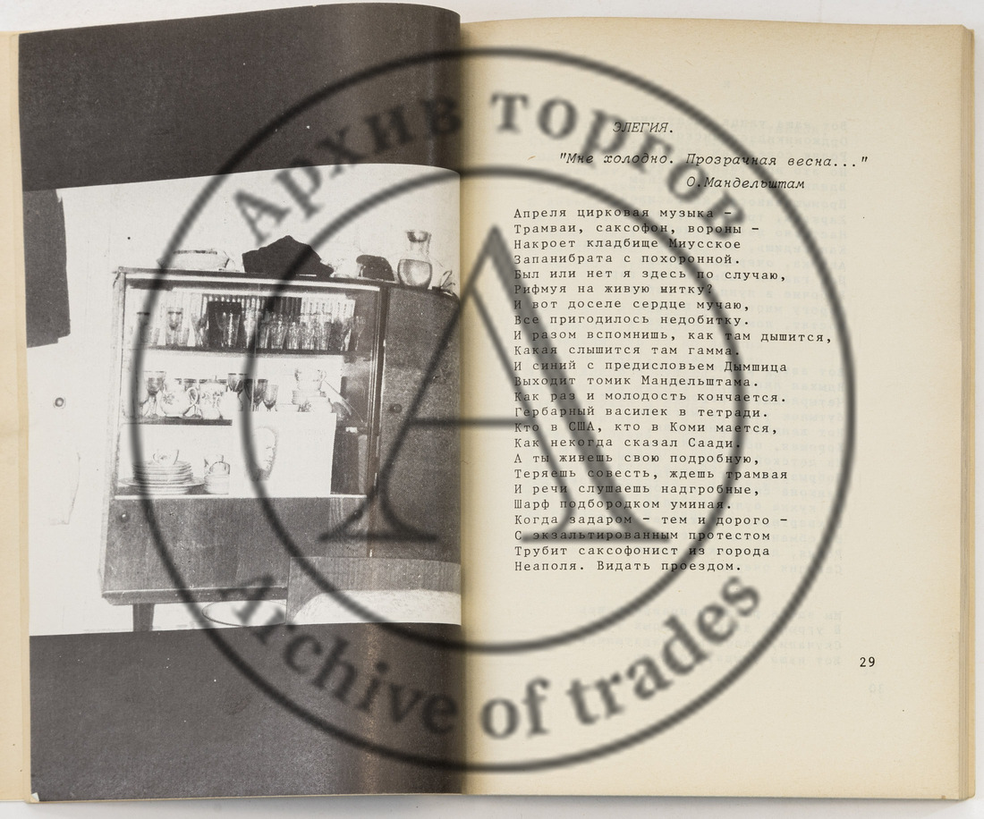 В сборник вошли стихотворения С.М. Гандлевского, Д.А. Пригова, М.Н. Айзенберга, М.А. Сухотина, В.Г. Санчука, Т.Ю. Кибирова, Л.С. Рубинштейна.
