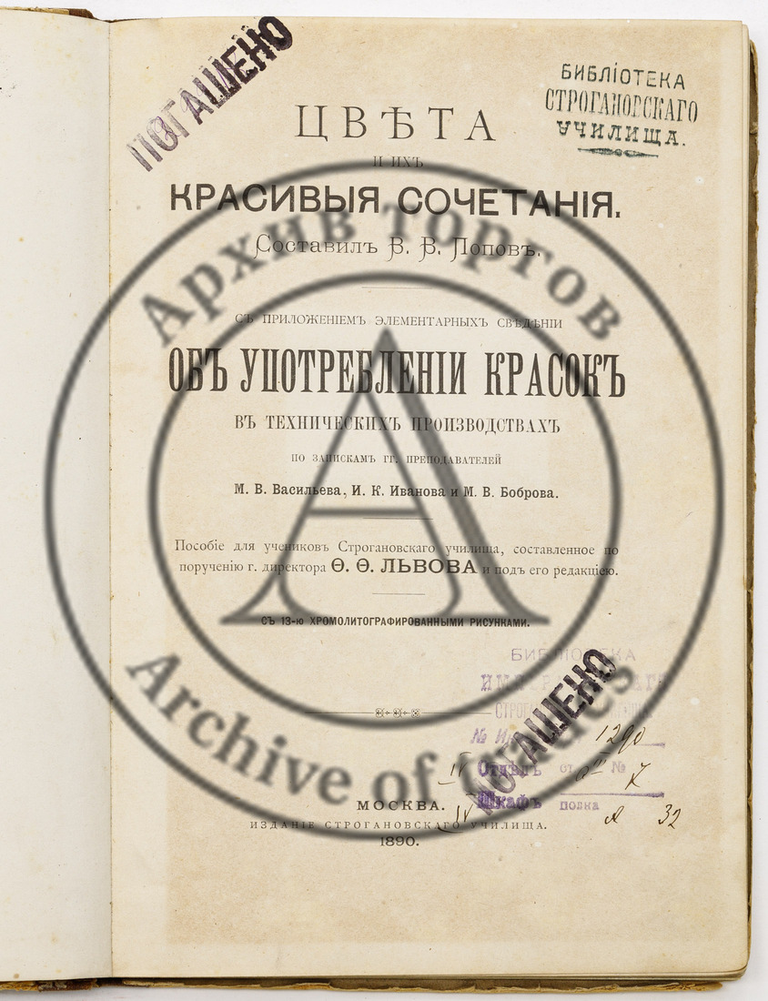 Попов В.В. Цвета и их красивые сочетания: С приложением элементарных сведений об употреблении красок в технических производствах по запискам гг. преподавателей М.В. Васильева, И.К. Иванова и М.В. Боброва: Пособие для учеников Строгановского училища